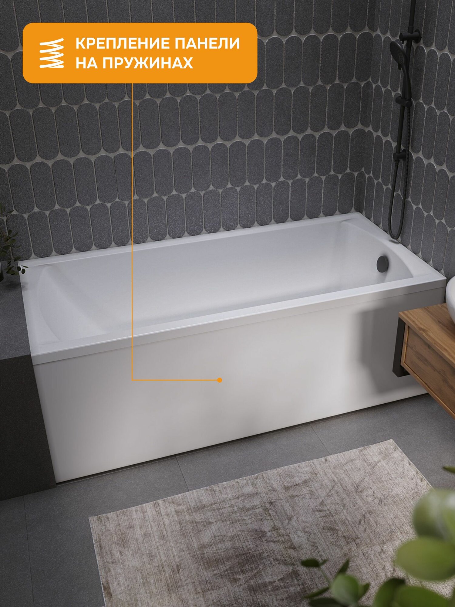 Ванна акриловая 170х70 см KANE MODULEASY в комплекте 4в1: Прямоугольная ванна, фронтальная панель, стальная рама, слив-перелив 01кейн1770кп