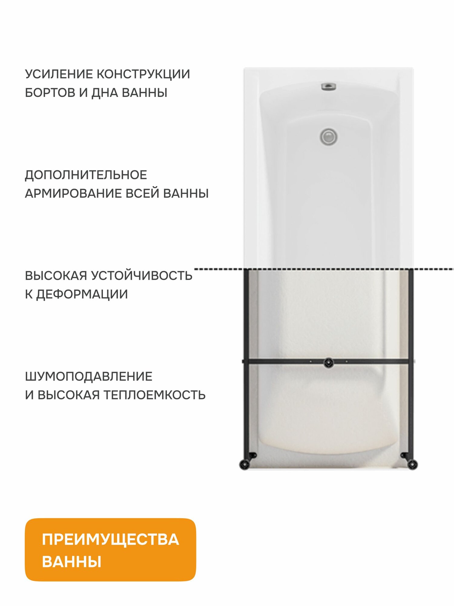 Ванна акриловая 170х75 см KANE MODULEASY в комплекте 3в1: Прямоугольная ванна, стальная рама, слив-перелив 01кейн1775кс2+