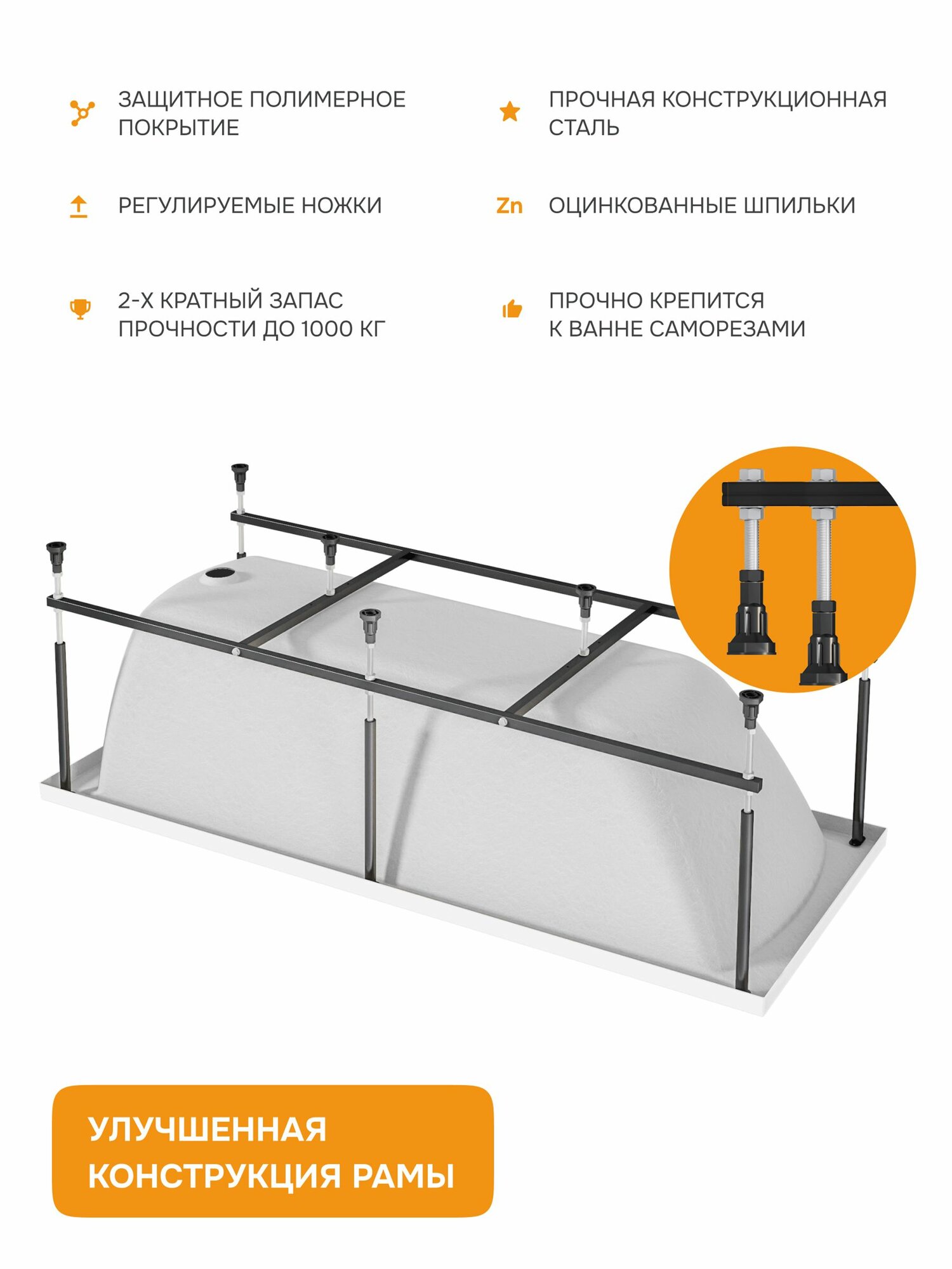 Ванна акриловая 180х70 см KANE MODULEASY в комплекте 4в1: Прямоугольная ванна, фронтальная панель, стальная рама, слив-перелив 01кейн1870кп