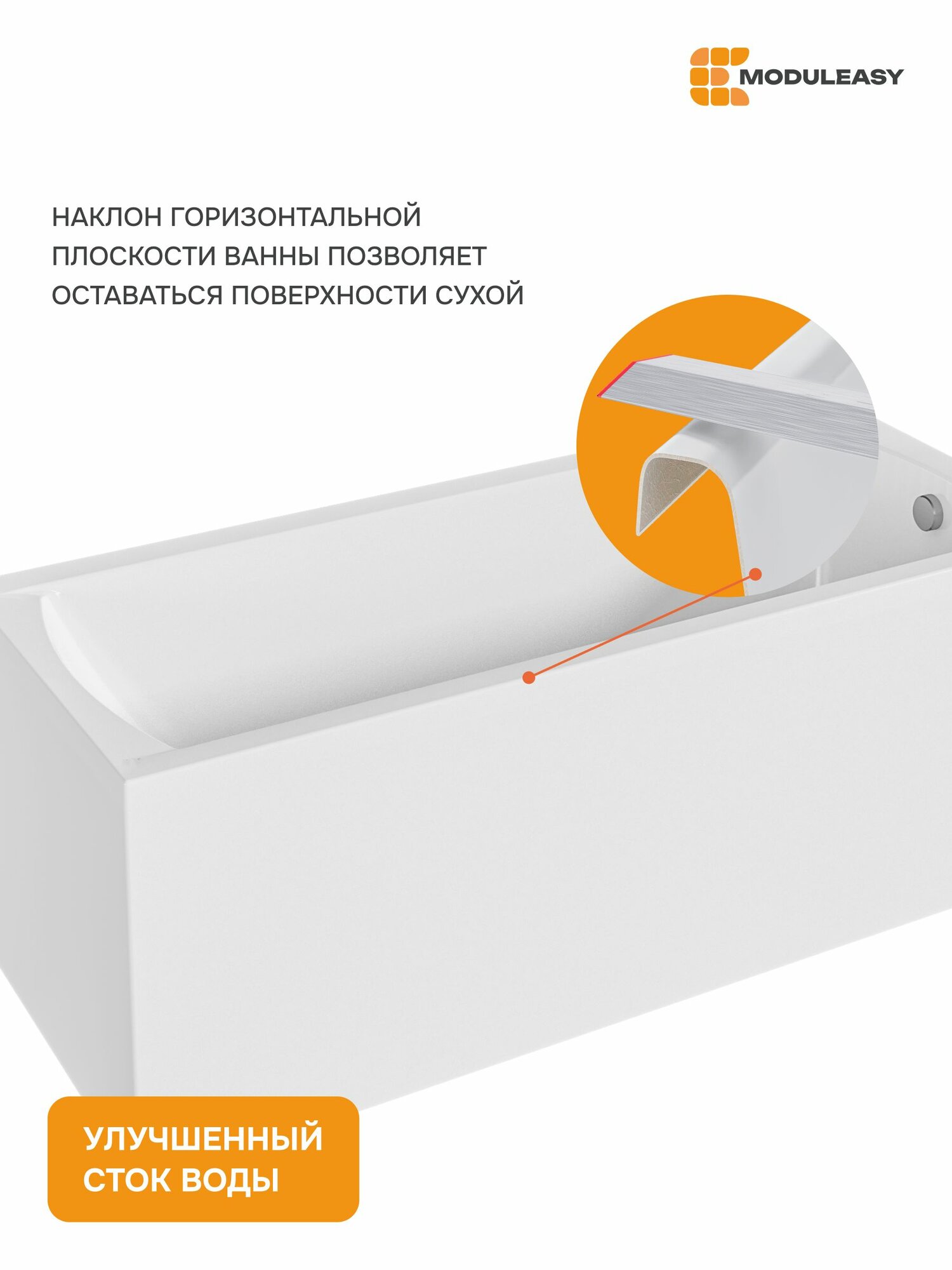 Ванна акриловая 150х75 см KANE Прямоугольная белая, 100% сантехнический акрил, MODULEASY 01кейн1575