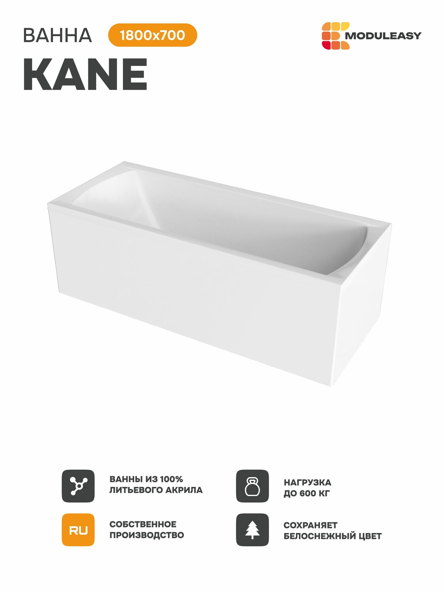 Ванна акриловая 180х70 см KANE Прямоугольная белая, 100% сантехнический акрил, MODULEASY 01кейн1870