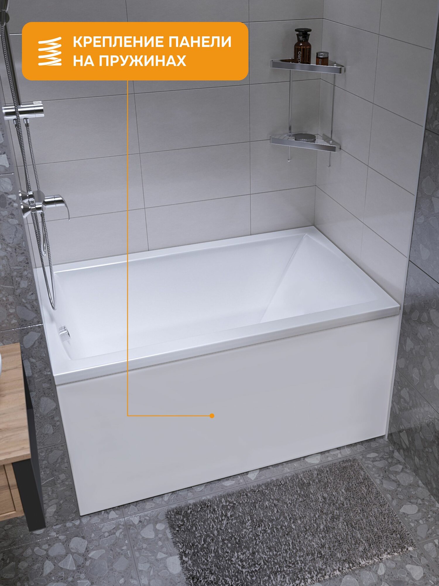 Ванна акриловая 155х70 см KANE MODULEASY в комплекте 4в1: Прямоугольная ванна, фронтальная панель, стальная рама, слив-перелив 01кейн15570кп