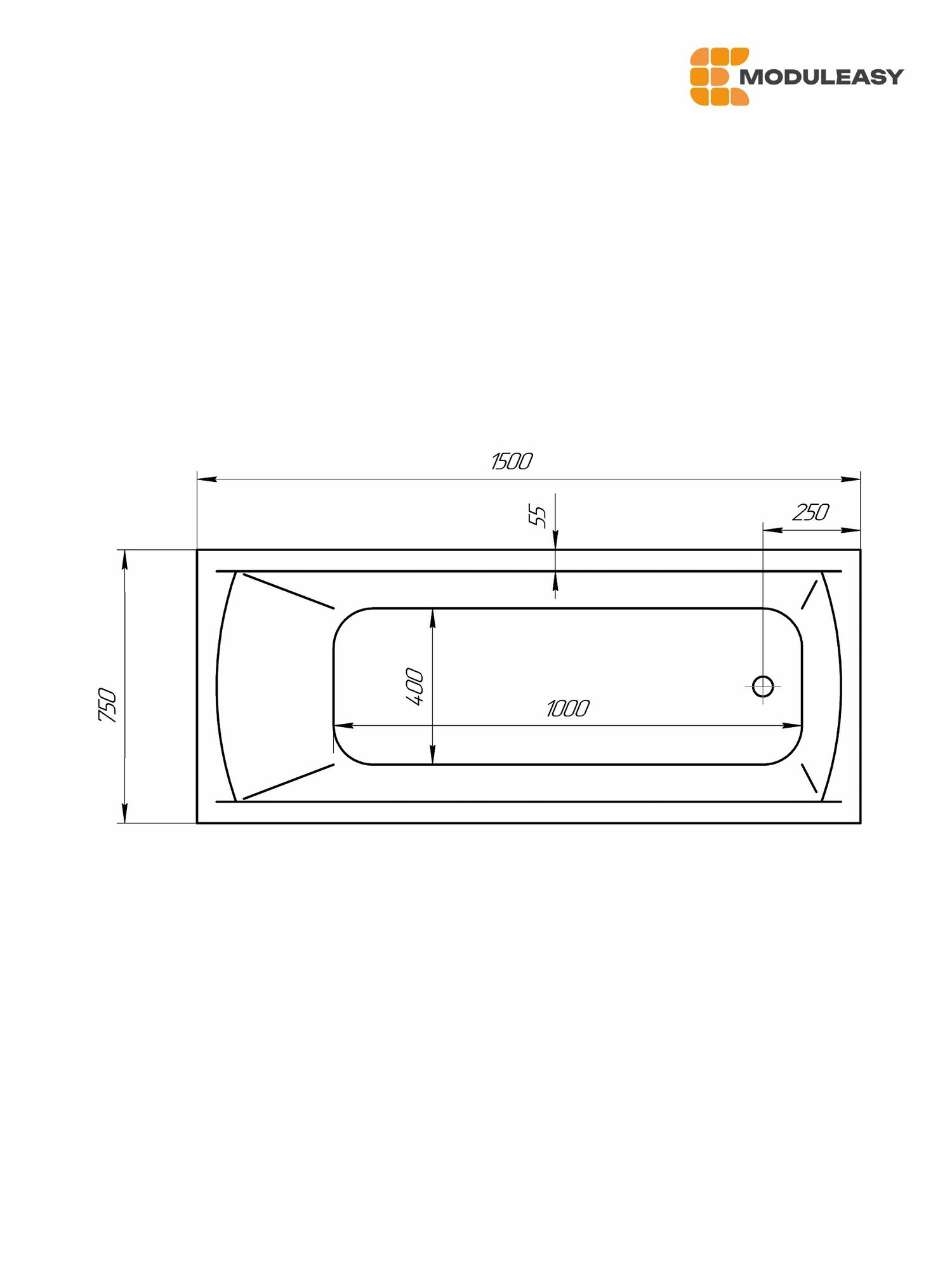 Ванна акриловая 150х75 см KANE Прямоугольная белая, 100% сантехнический акрил, MODULEASY 01кейн1575