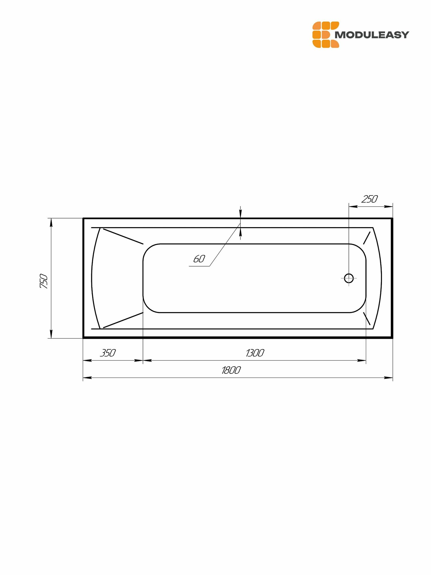 Ванна акриловая 180х75 см KANE Прямоугольная белая, 100% сантехнический акрил, MODULEASY 01кейн1875