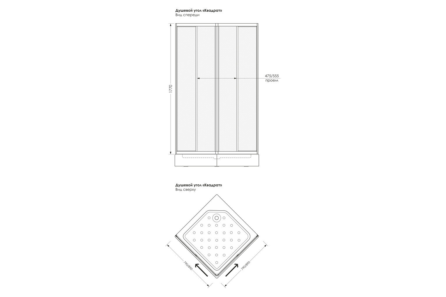 Душевой уголок Quwelle"Квадрат 890", 90х90, стенки сотовый поликарбонат, профиль - белый, высота 177см интересное: