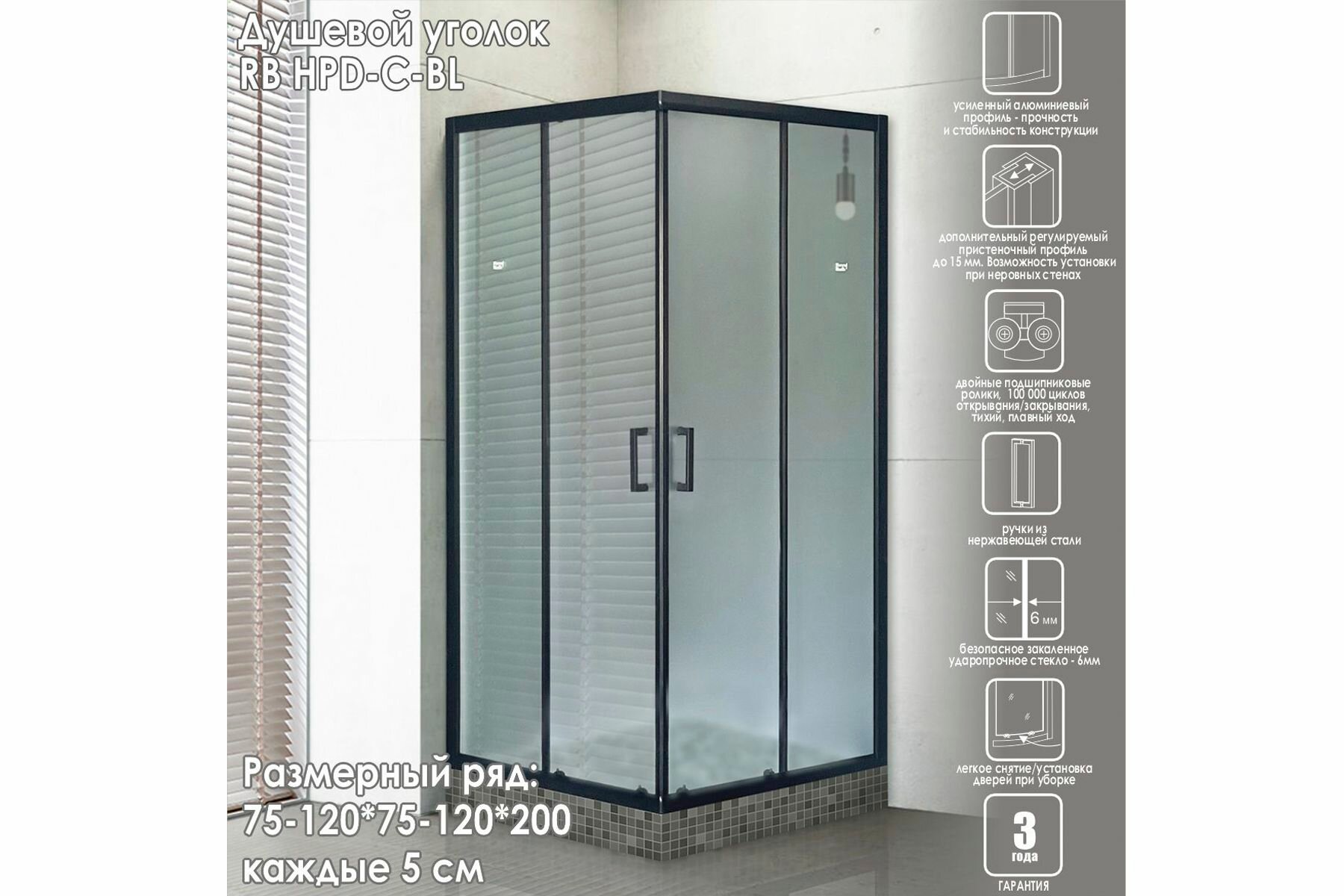 Душевой уголок 90х80х200 Royal Bath стекло матовое квадрат 6 мм профиль черный матовый интересное: