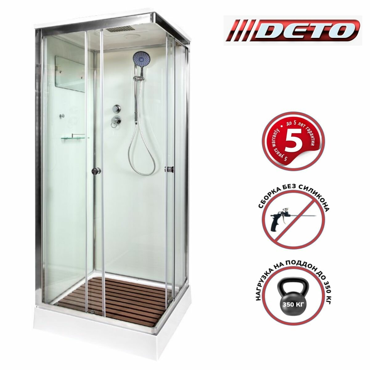 Душевая кабина Deto K401S (100x100x220) низкий поддон, стекло прозрачное, универсальная интересное: