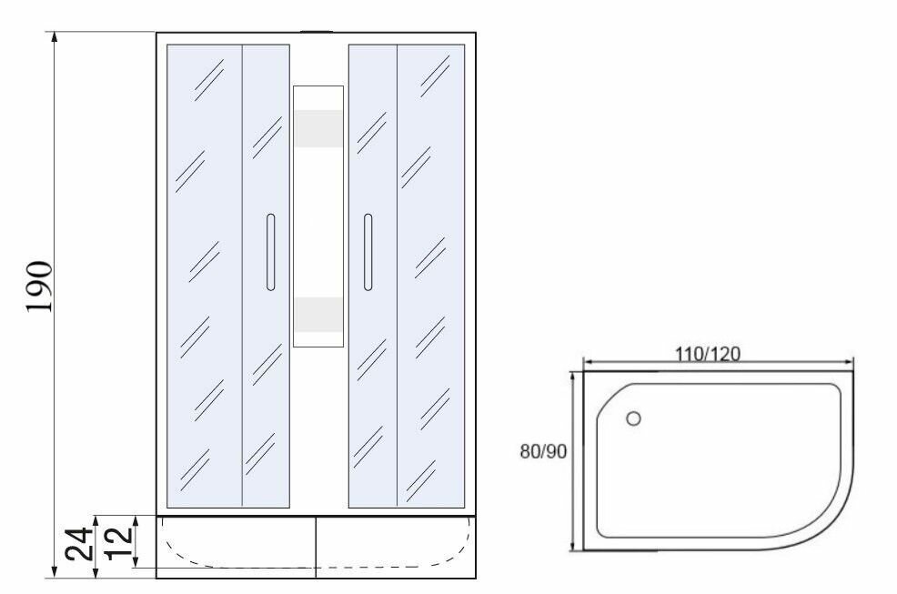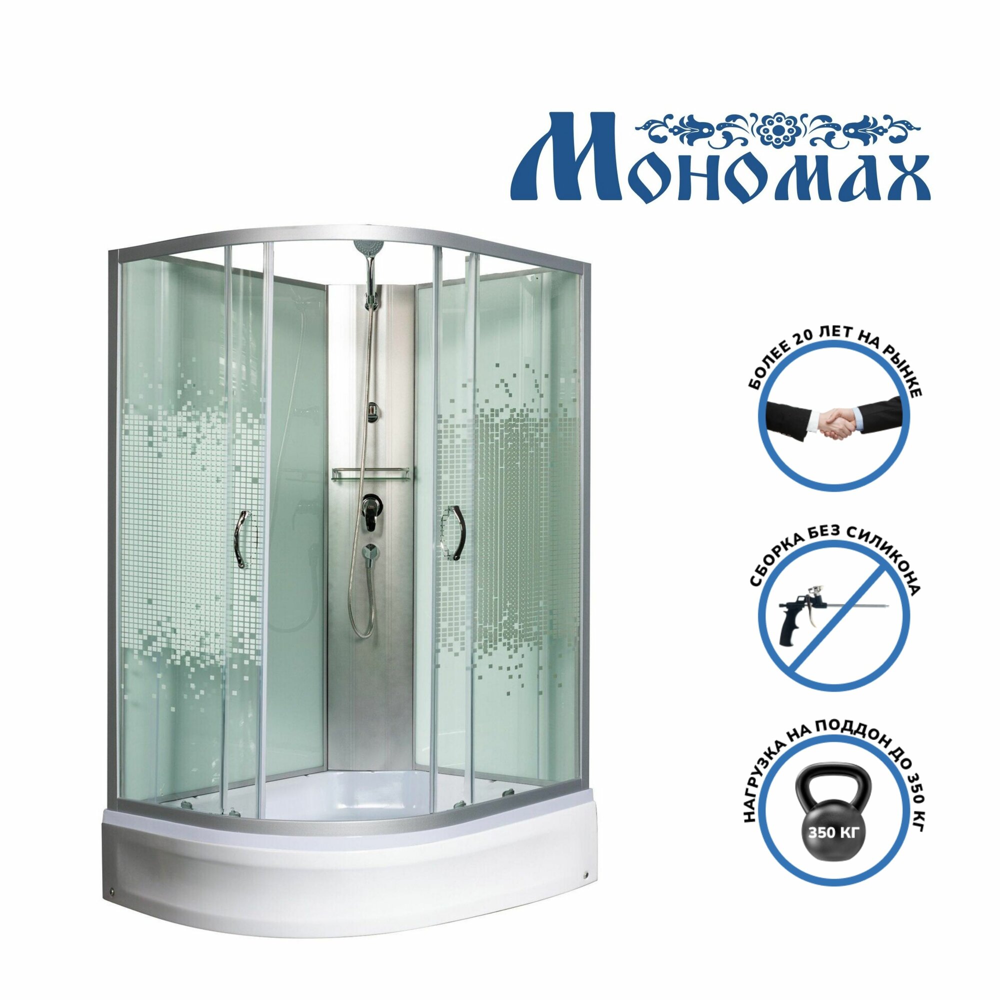 Купить Душевая кабина мономах (120x90) средний поддон, стекло мозаика, правая, без крыши