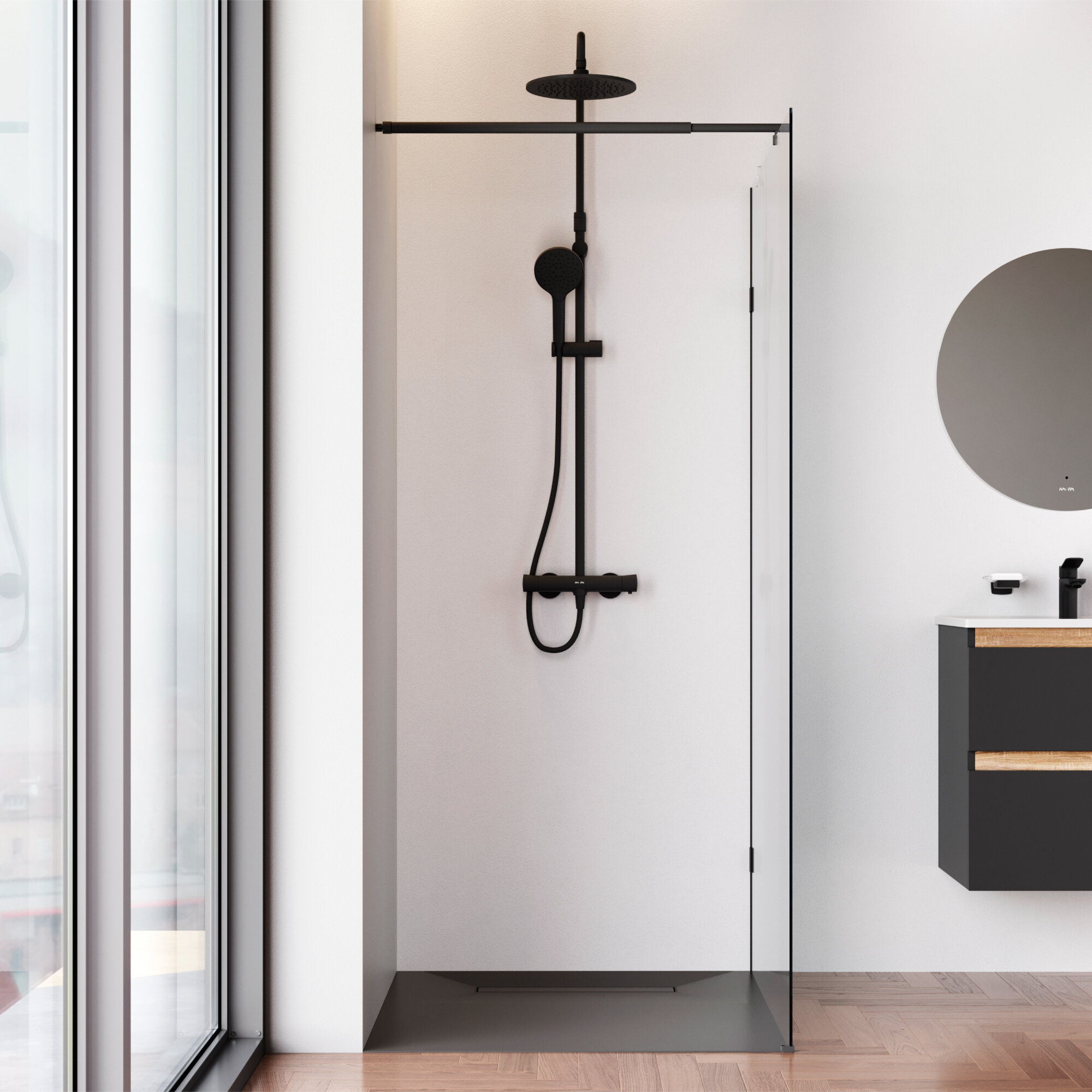 Душевая перегородка AM.PM X-Joy 80x195 см, профиль матовый черный, стекло прозрачное, универсальная