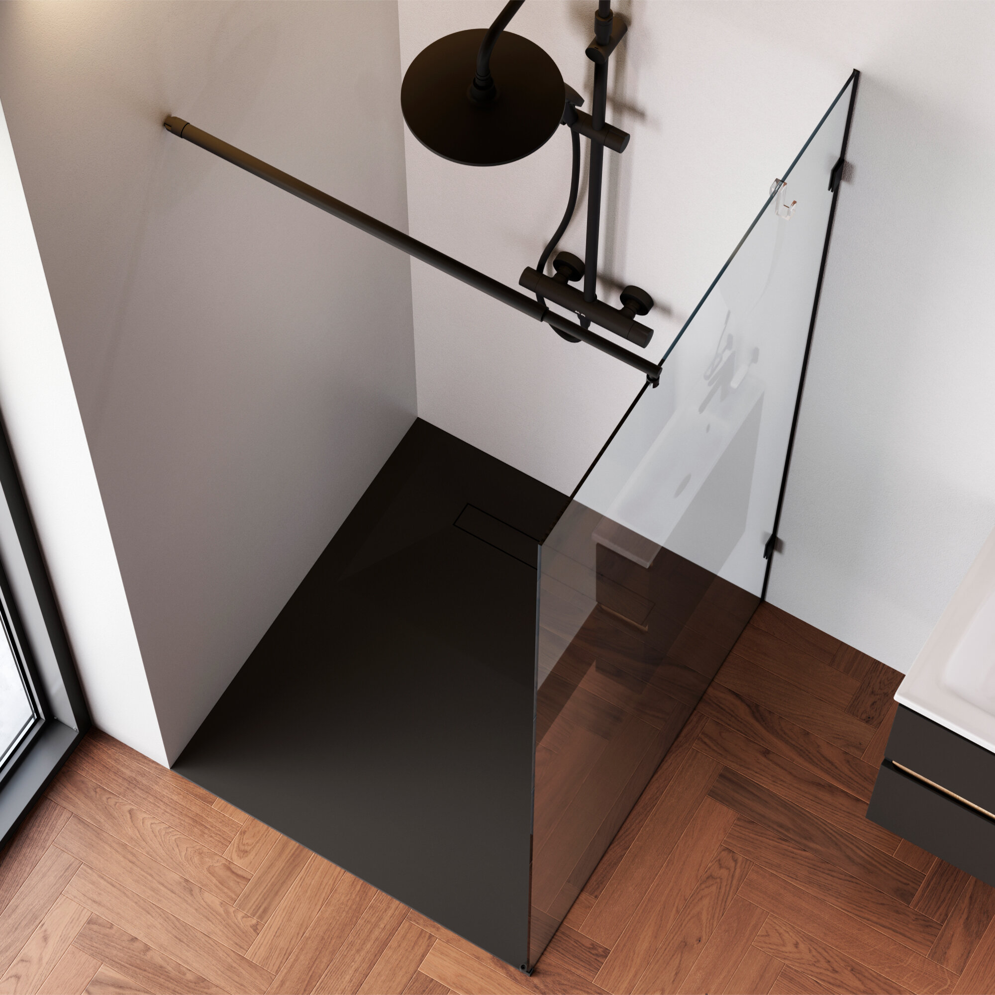 Душевая перегородка AM.PM X-Joy 90x195 см, профиль матовый черный, стекло прозрачное, универсальная