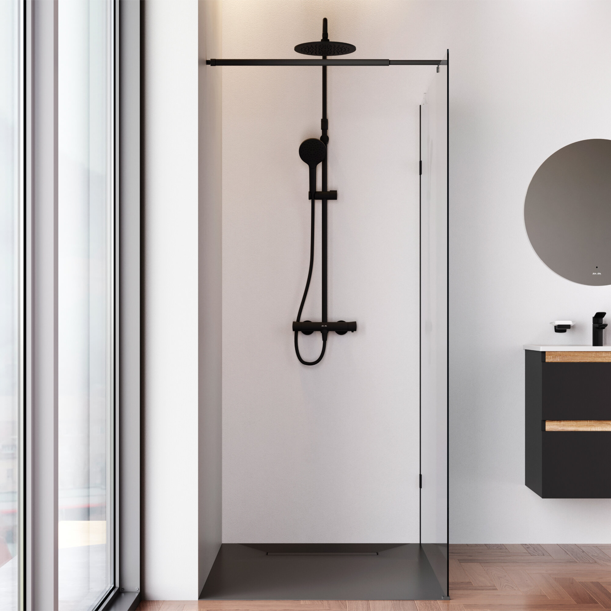 Душевая перегородка AM.PM X-Joy 80x195 см, профиль матовый черный, стекло прозрачное, универсальная