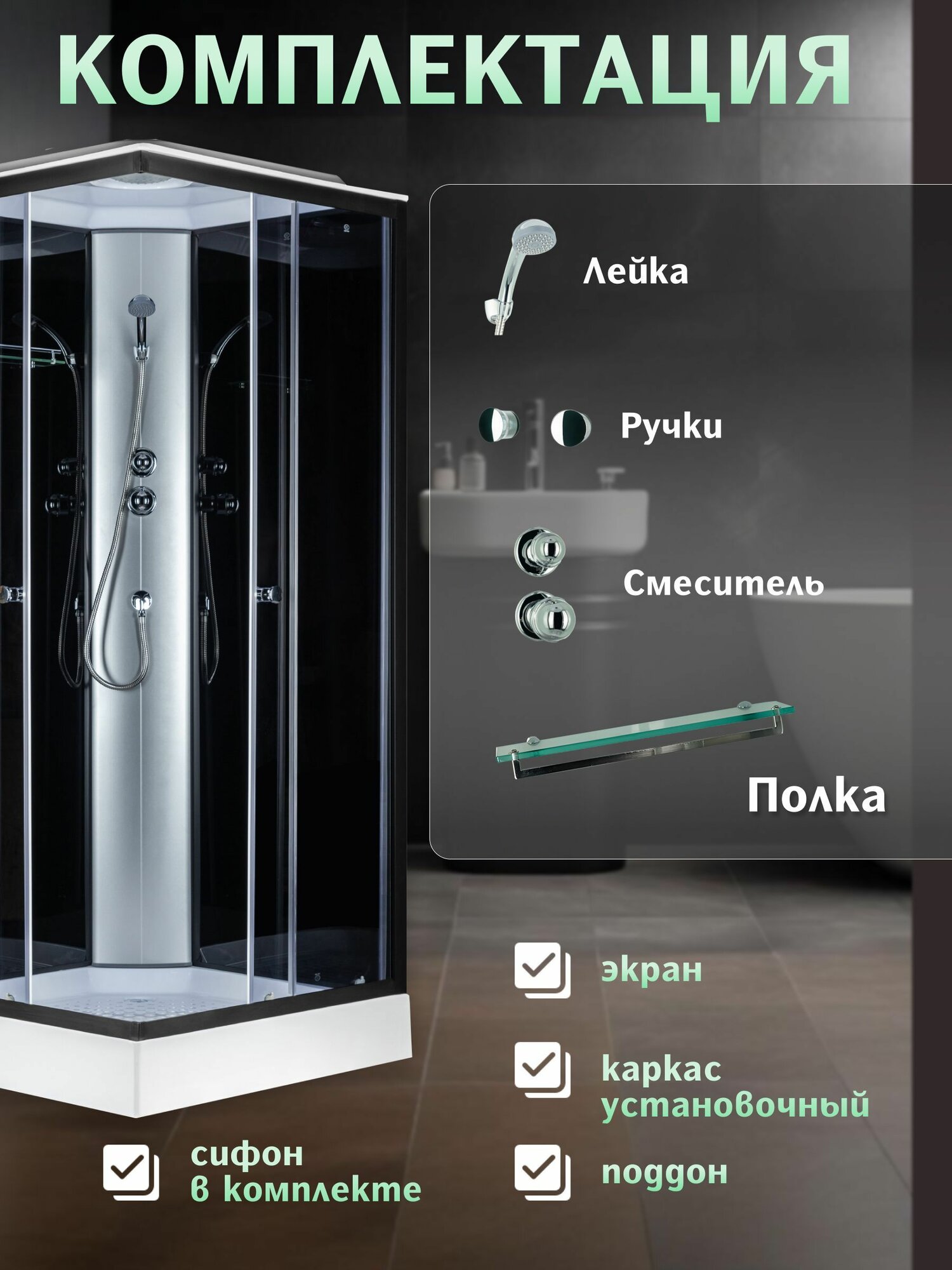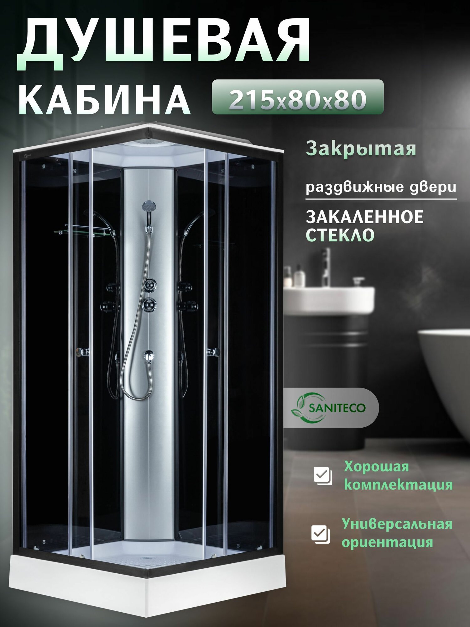 Душевая кабина Saniteco SN-280B, 80x80 см, с низким поддоном, черная интересное: