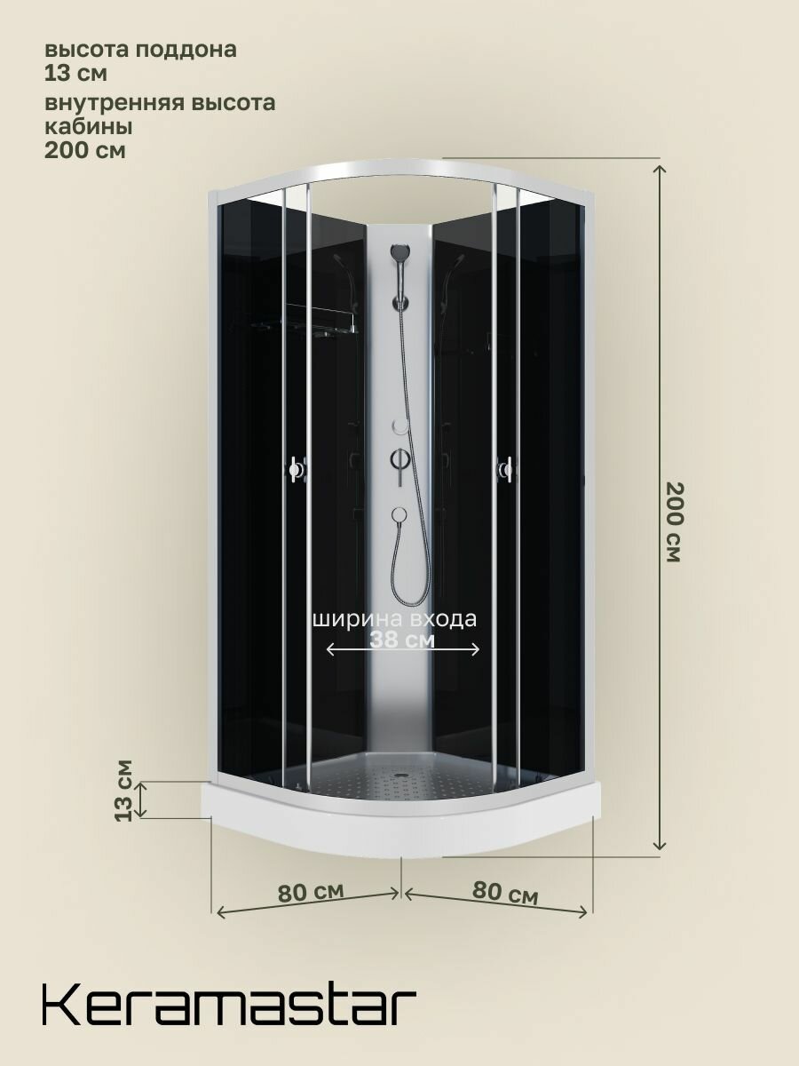 Душевая кабина 80x80x200 Keramastar Astra Night KR098042BK с низким поддоном, без крыши интересное: