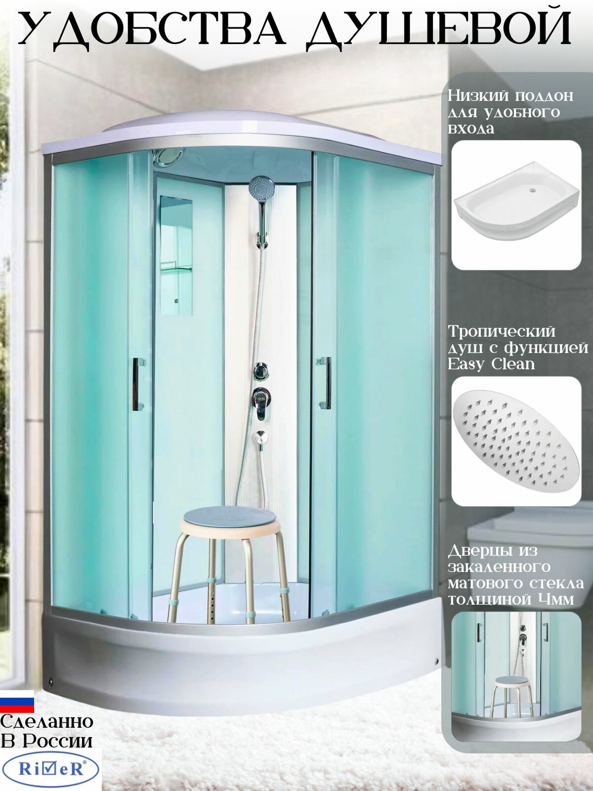 Душевая кабина Desna 100/80/24 R MT, (100*80) правосторонняя, матовое стекло интересное: