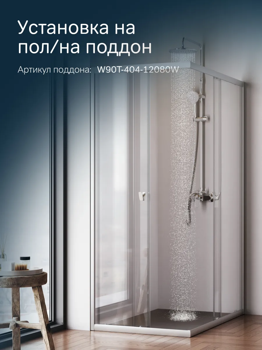 Душевой уголок AM.PM Sunny 90x90, душевое ограждение, без поддона, стекло прозрачное, профиль матовый хром