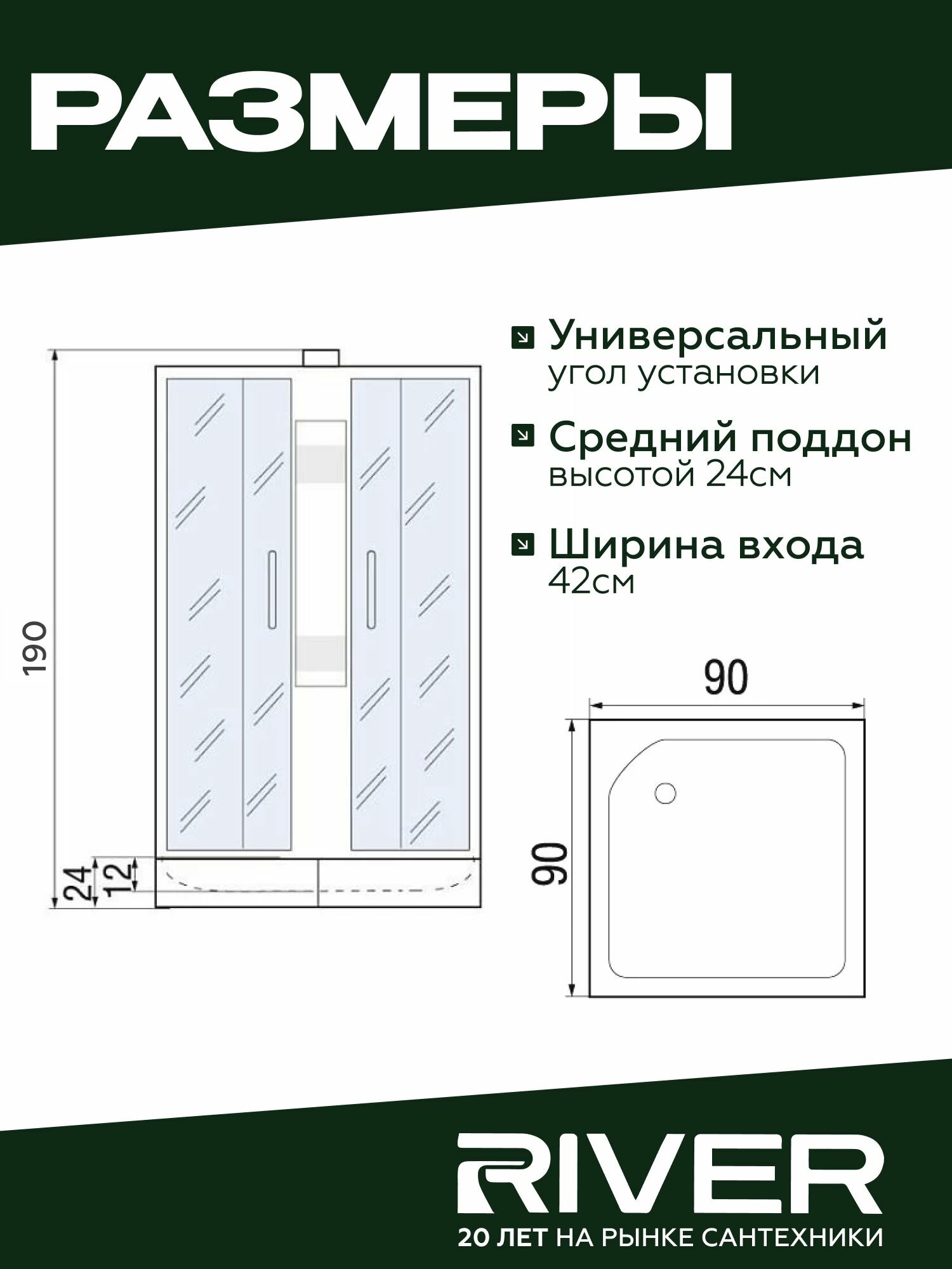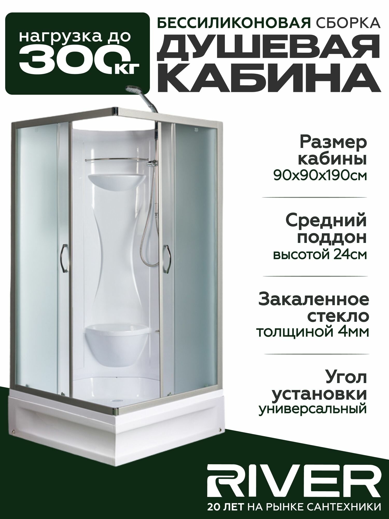 Душевая кабина River NEVA Б/К (90x90) средний поддон, стекло матовое, универсальная интересное:
