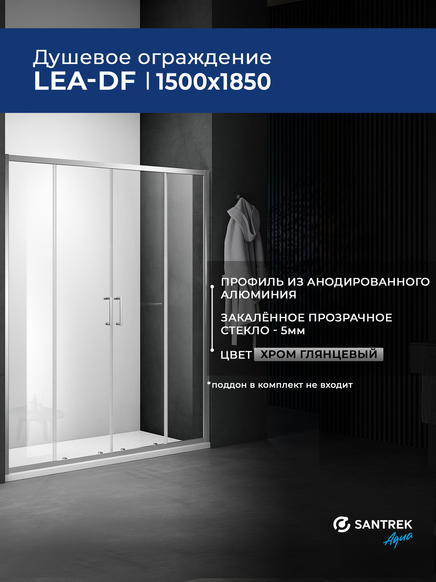 СохранитьДушевое ограждение дверь в нишу SANTREK Lea- DF-1500-C-Chrome 1500*1850 Прямое стекло Прозр 5мм, профиль Хром интересное: