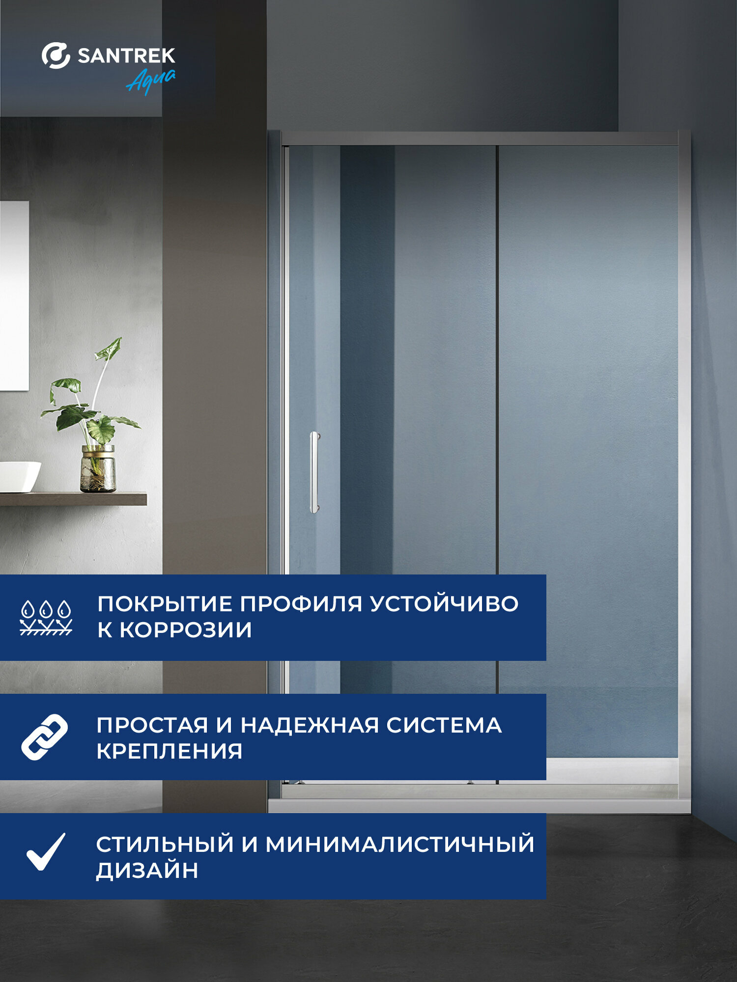 СохранитьДушевое ограждение дверь в нишу SANTREK Lea- DF-1300-C-Chrome 1300*1850 Прямое стекло Прозр 5мм, профиль Хром интересное: