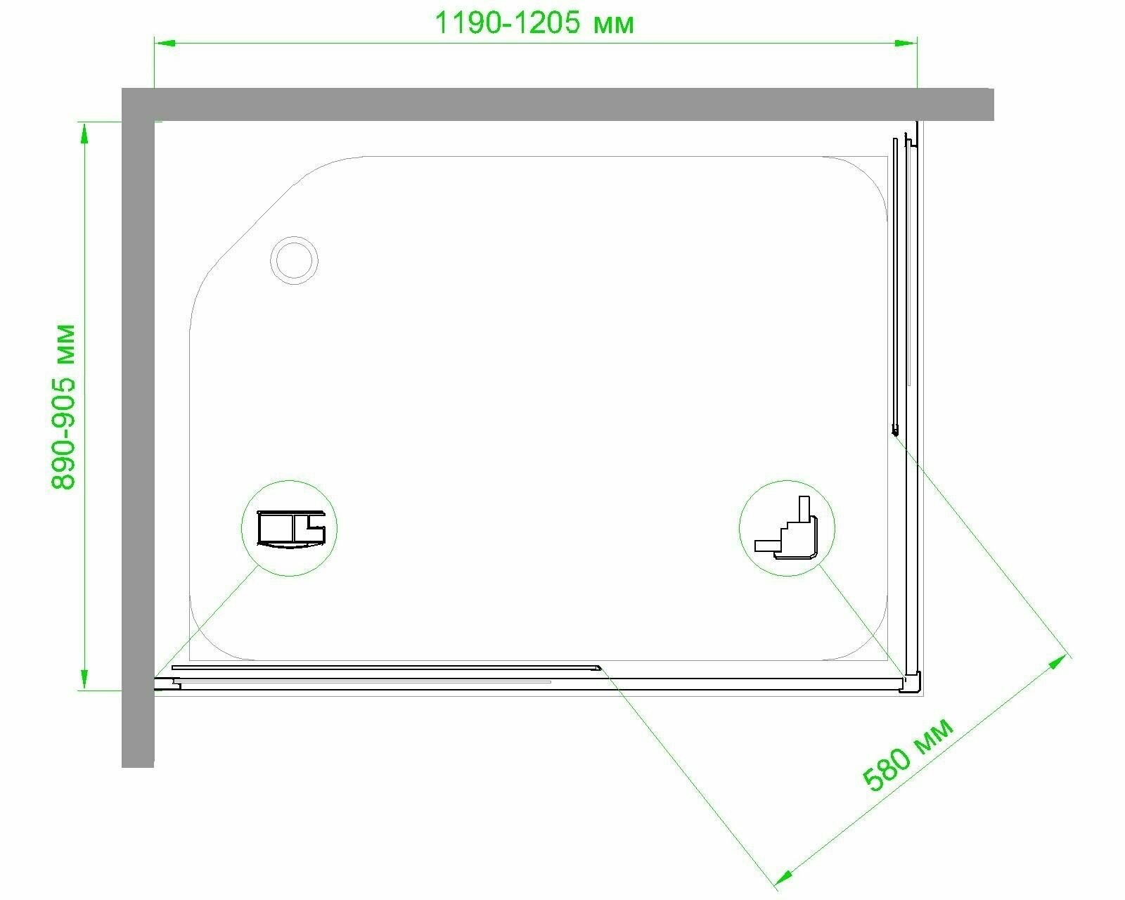 Душевой уголок RB 120х80х200 закаленное стекло прозрачное 6мм профиль сатин