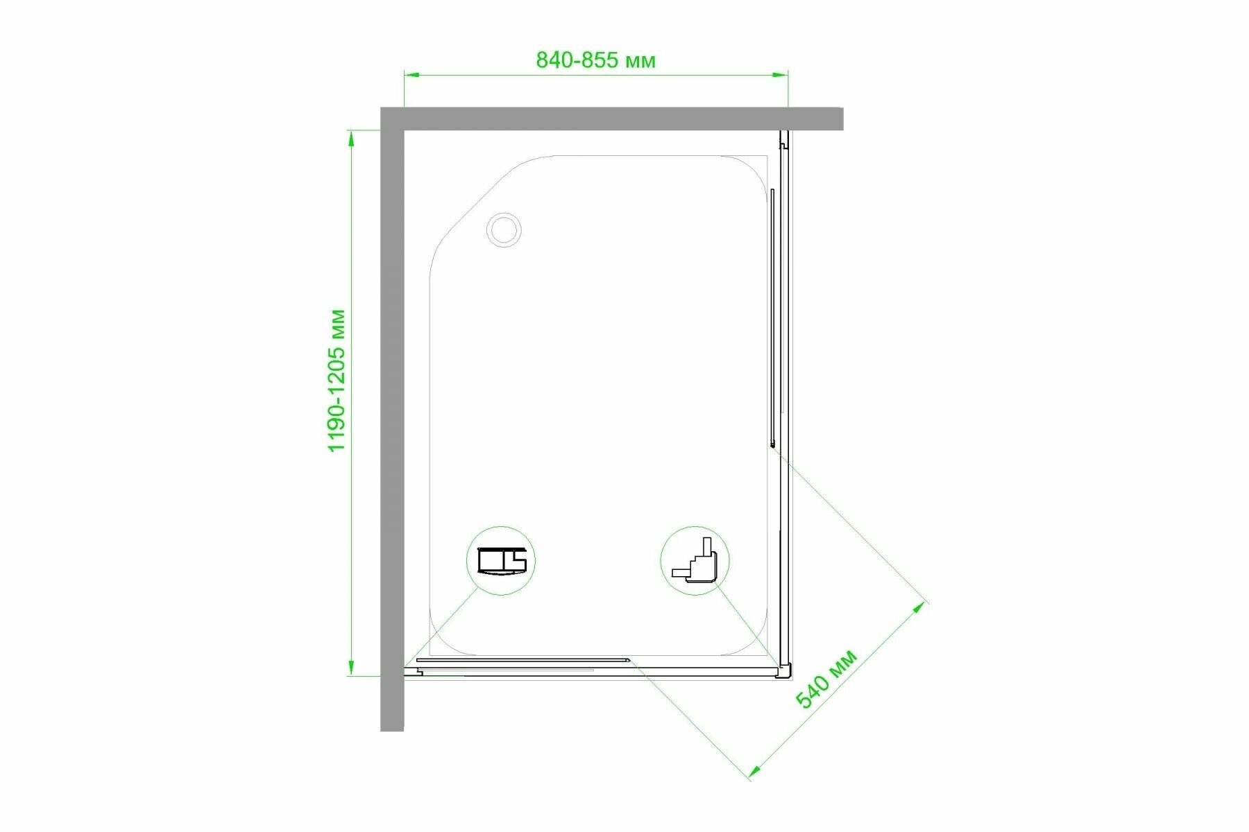 Душевой уголок RB 120х90х200 закаленное стекло прозрачное 6мм профиль сатин
