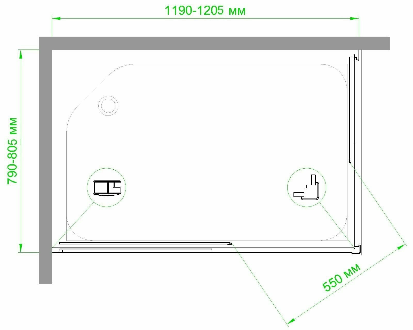 Душевой уголок RB 120х90х200 закаленное стекло прозрачное 6мм профиль сатин