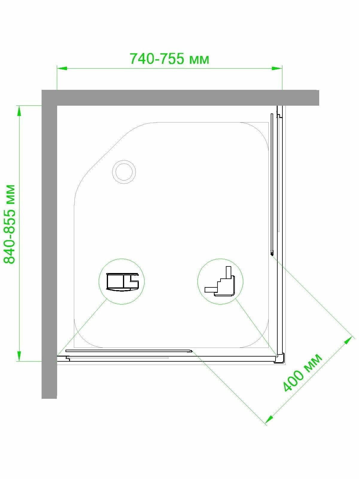 Душевой уголок RB 85х80х200 закаленное стекло прозрачное 6мм профиль сатин