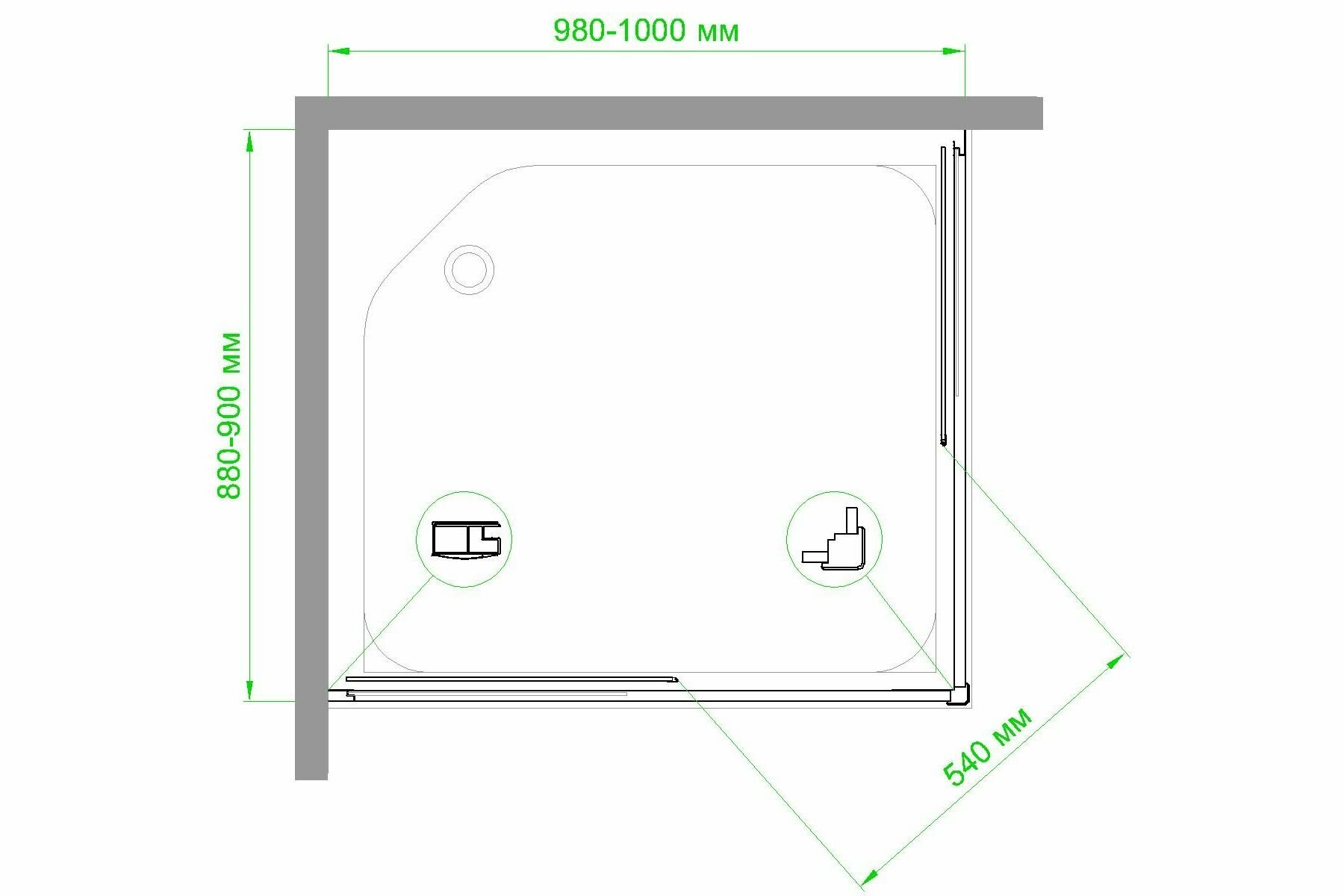 Душевой уголок RB 100х90х200 закаленное стекло прозрачное 6мм профиль сатин