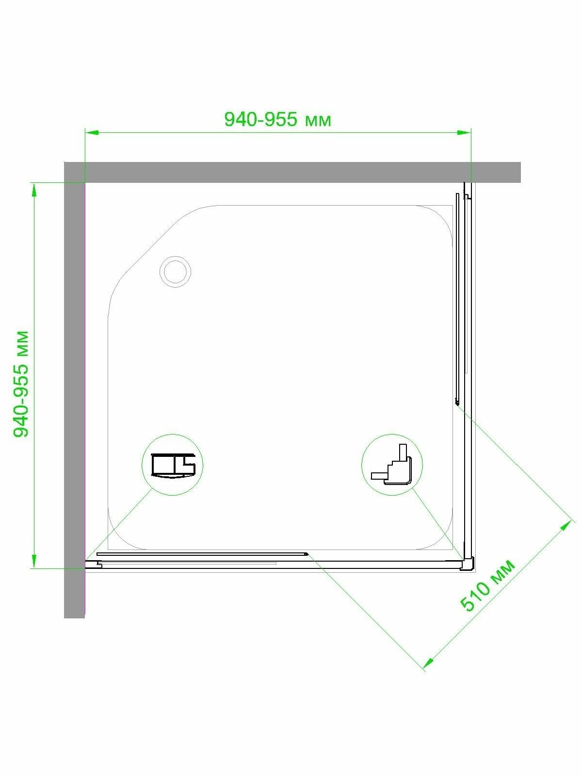 Душевой уголок RB 95х100х200 закаленное стекло прозрачное 6мм профиль сатин