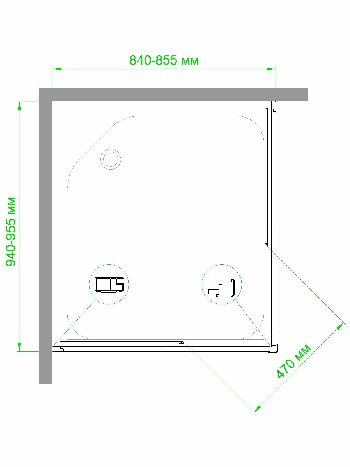 Душевой уголок RB 85х95х200 закаленное стекло прозрачное 6мм профиль сатин