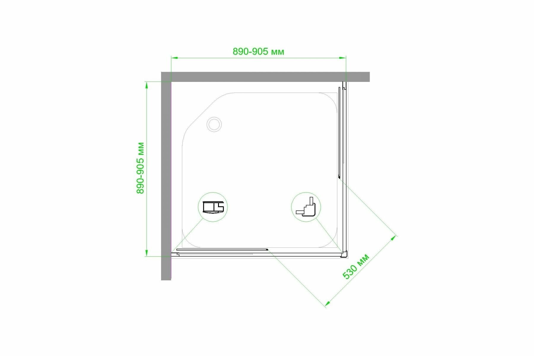 Душевой уголок 85х95х200 Royal Bath стекло прозрачное квадрат 6мм профиль белый