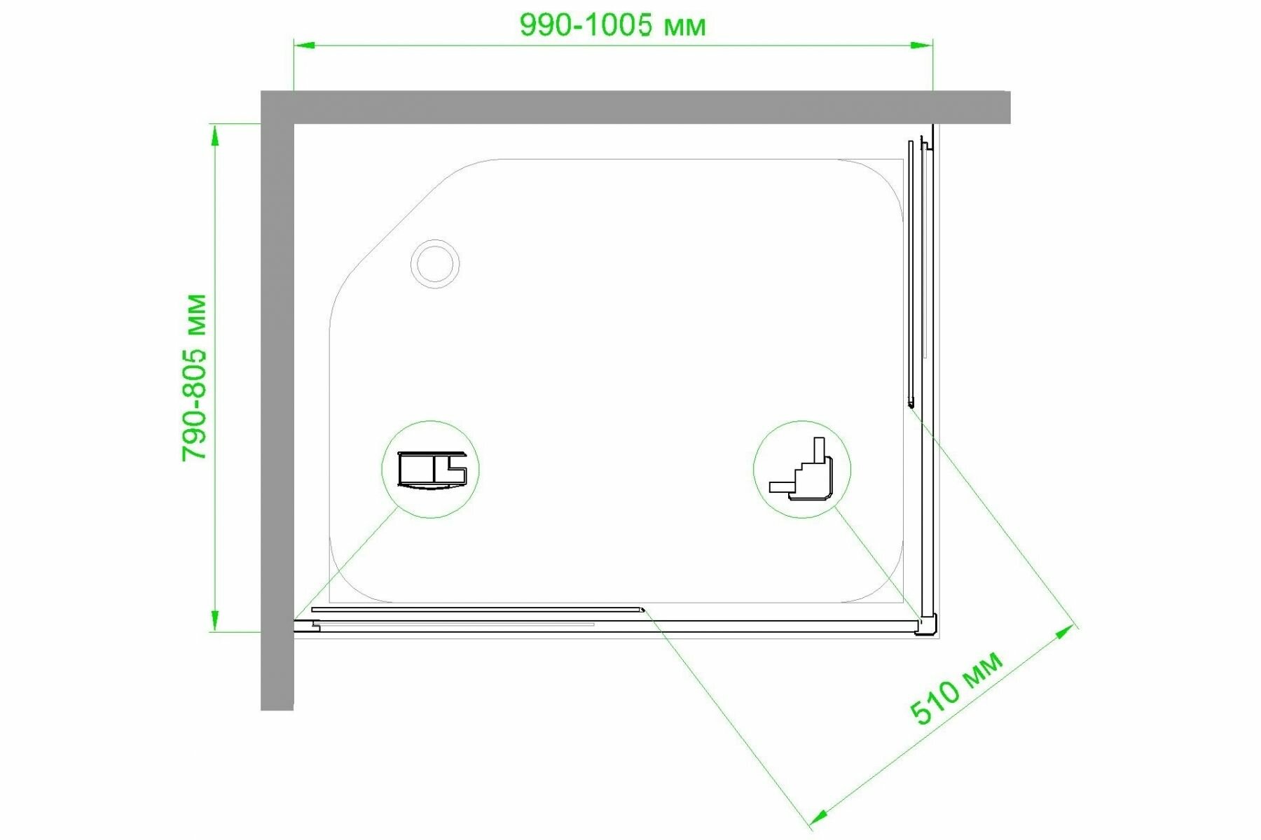 Душевой уголок RB 100х115х200 стекло прозрачное 6мм профиль хром