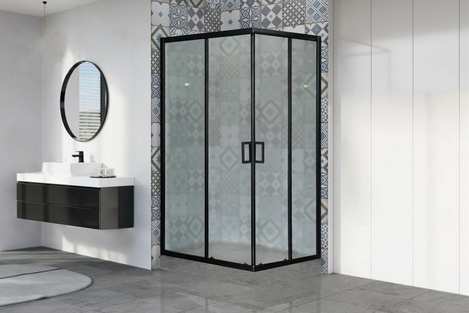 Душевой уголок 80х115х200 стекло матовое прямоугольник 6 мм профиль черный матовый