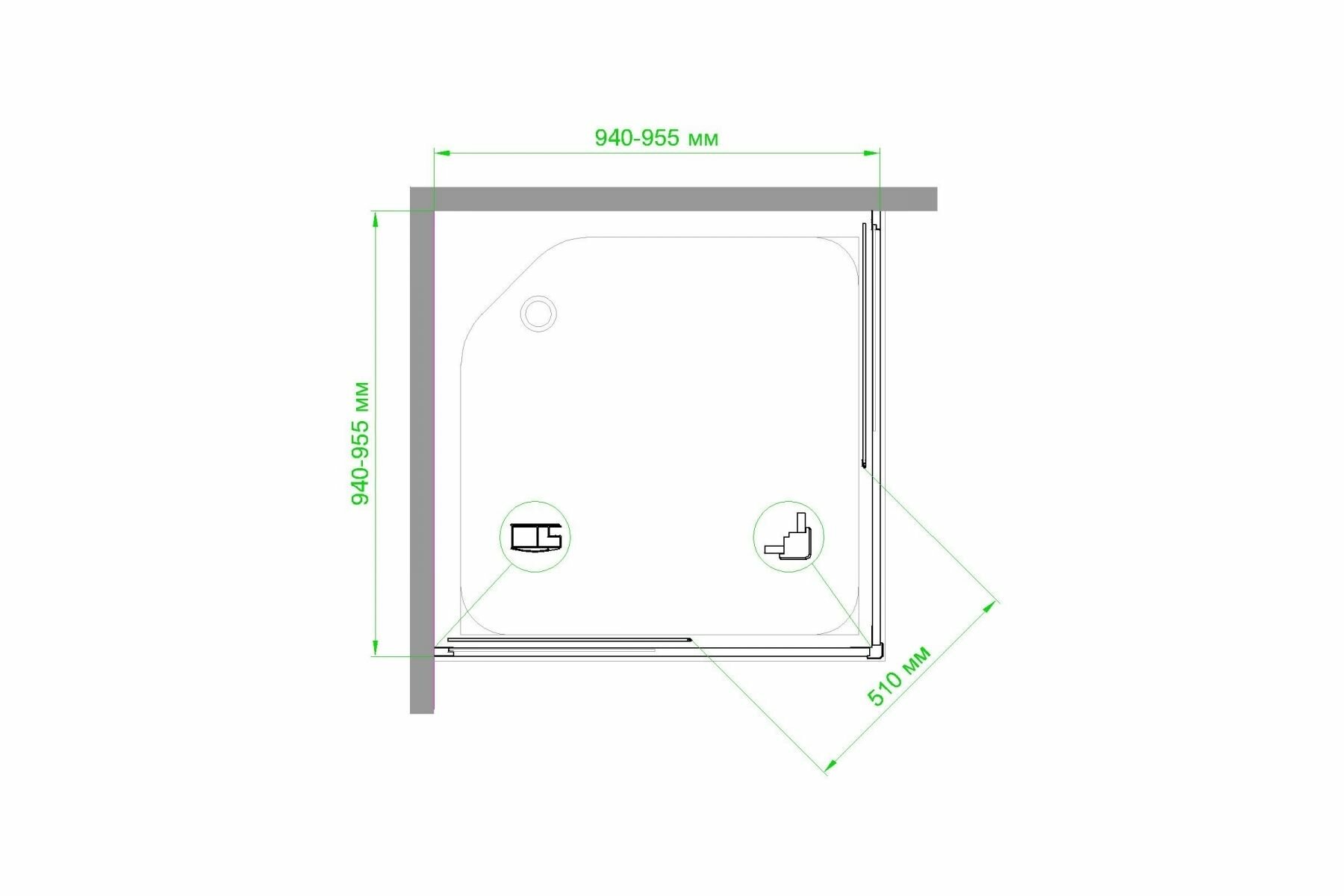 Душевой уголок RB 95х100х200 закаленное стекло прозрачное 6мм профиль сатин
