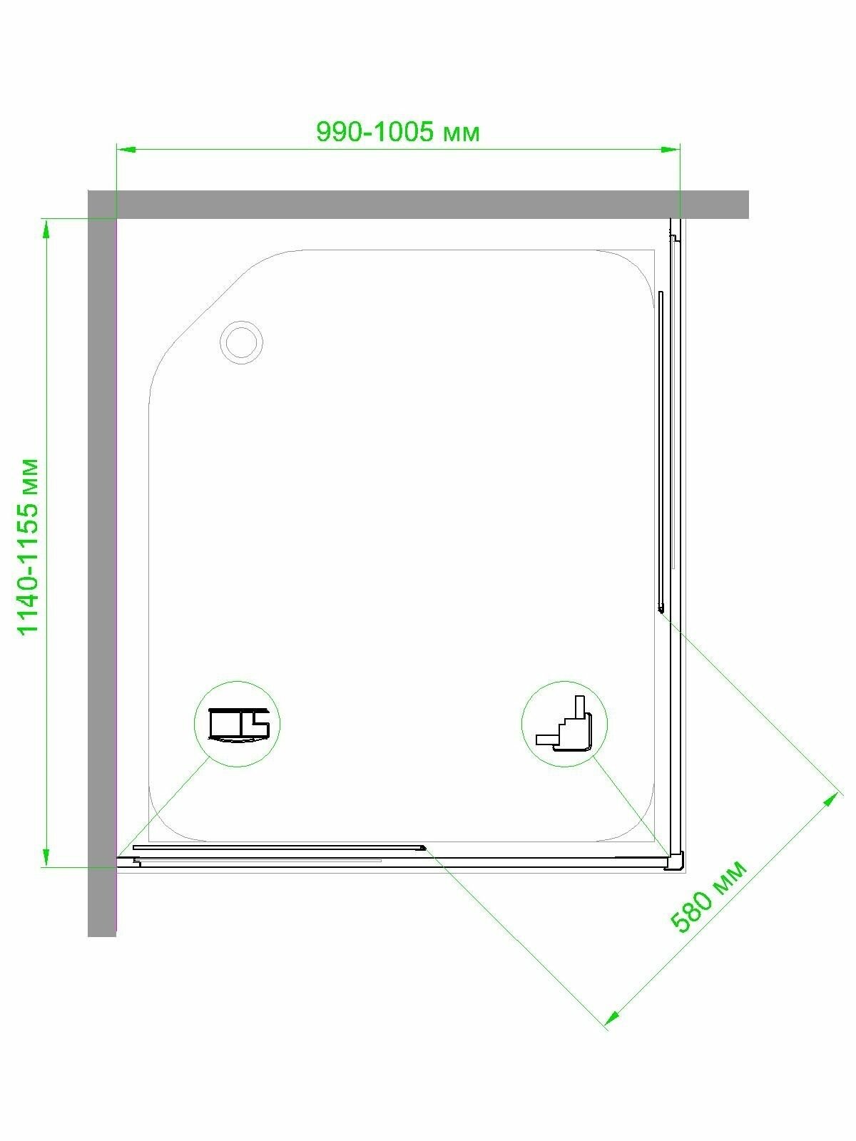 Душевой уголок RB 100х115х200 стекло прозрачное 6мм профиль хром