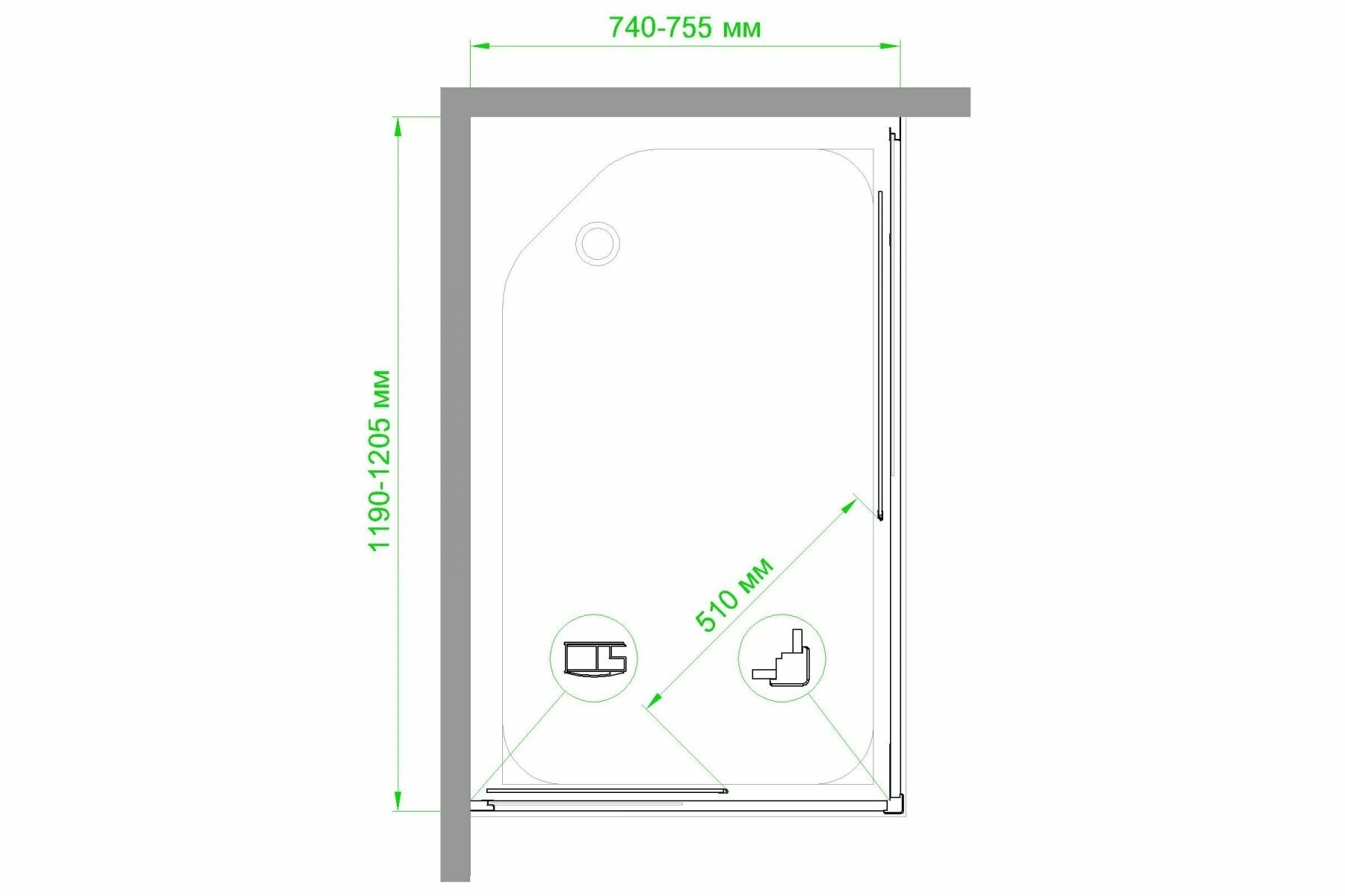 Душевой уголок RB 75х115х200 закаленное стекло прозрачное 6мм профиль сатин