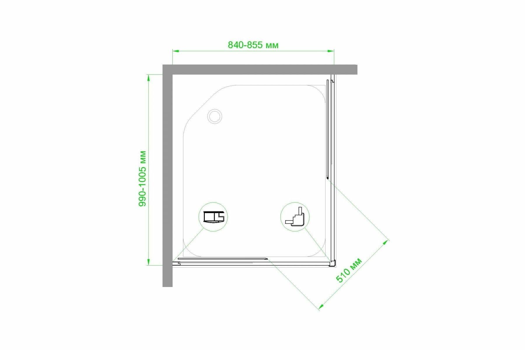 Душевой уголок RB 85х95х200 закаленное стекло прозрачное 6мм профиль сатин