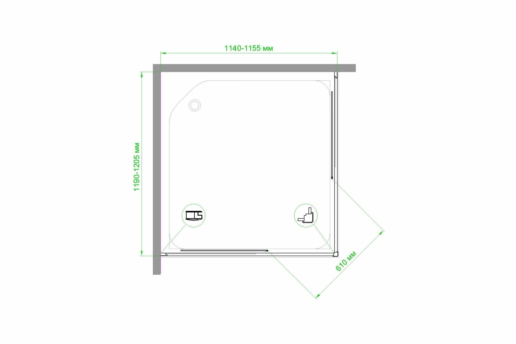 Душевой уголок RB 110х120х200 закаленное стекло прозрачное 6мм профиль сатин