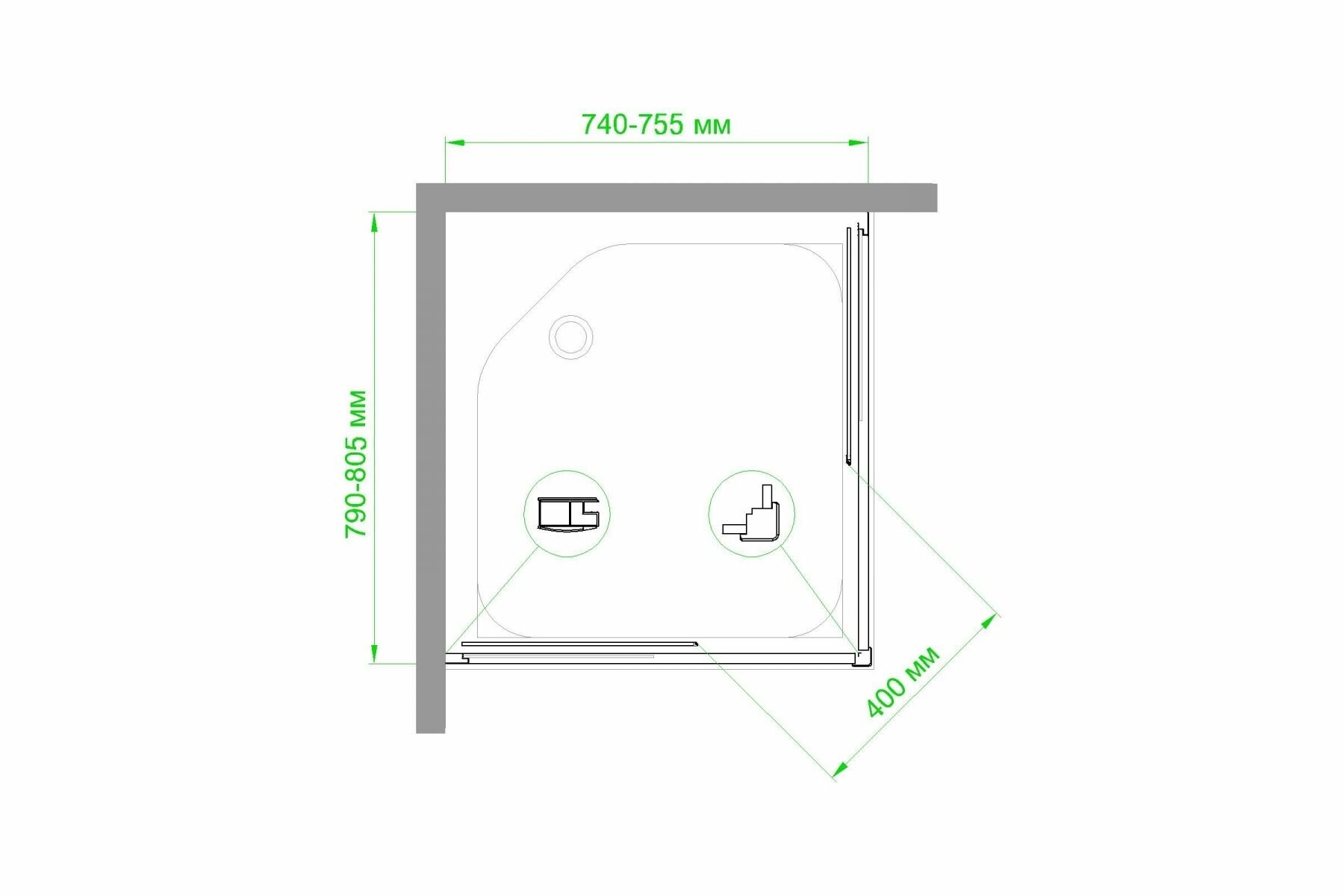 Душевой уголок 75х100х200 закаленное закаленное стекло прозрачное 6мм профиль сатин