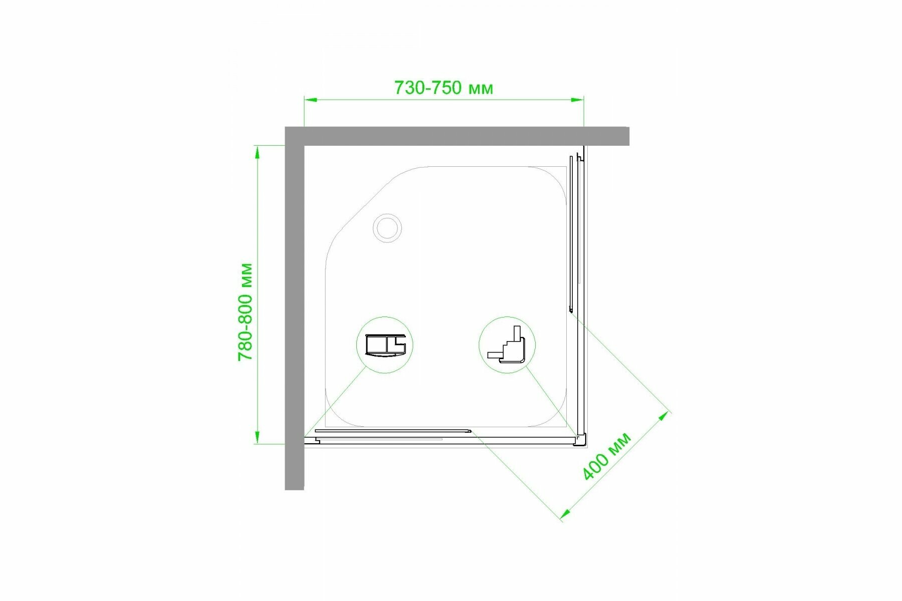 Душевой уголок 75х100х200 закаленное закаленное стекло прозрачное 6мм профиль сатин
