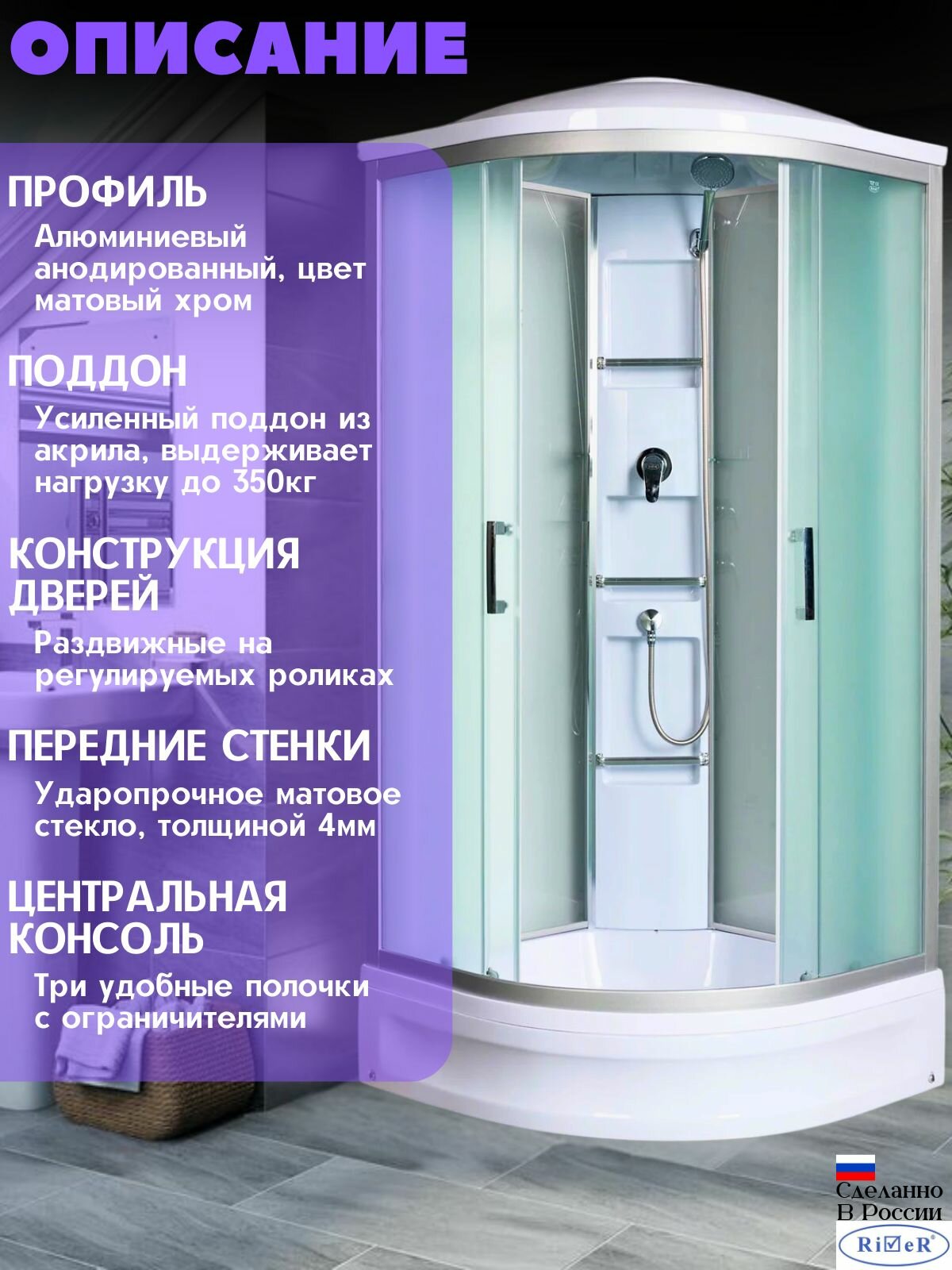 Душевая кабина RIVER AMUR 90/24MT, с поддоном, стеклянная, матовая, 90 см x 90см интересное: