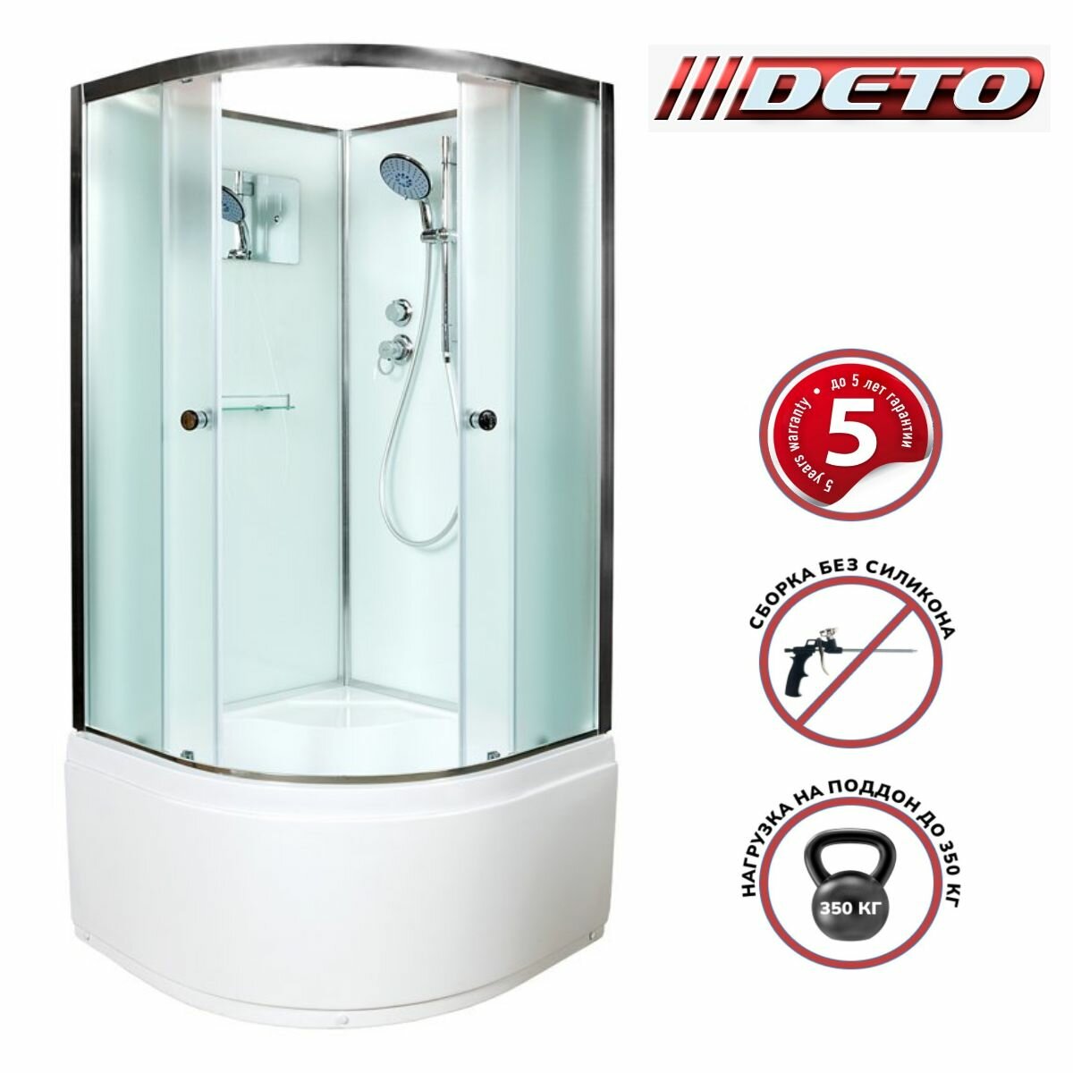 Ниже Вы можете прочитать отзывы на Душевая кабина Deto D90 (90х90х208) высокий поддон, стекло матовое, ознакомится с подробными характеристиками, посмотреть интересные обзоры и фотографии на Душевая кабина Deto D90 (90х90х208) высокий поддон, стекло матовое.