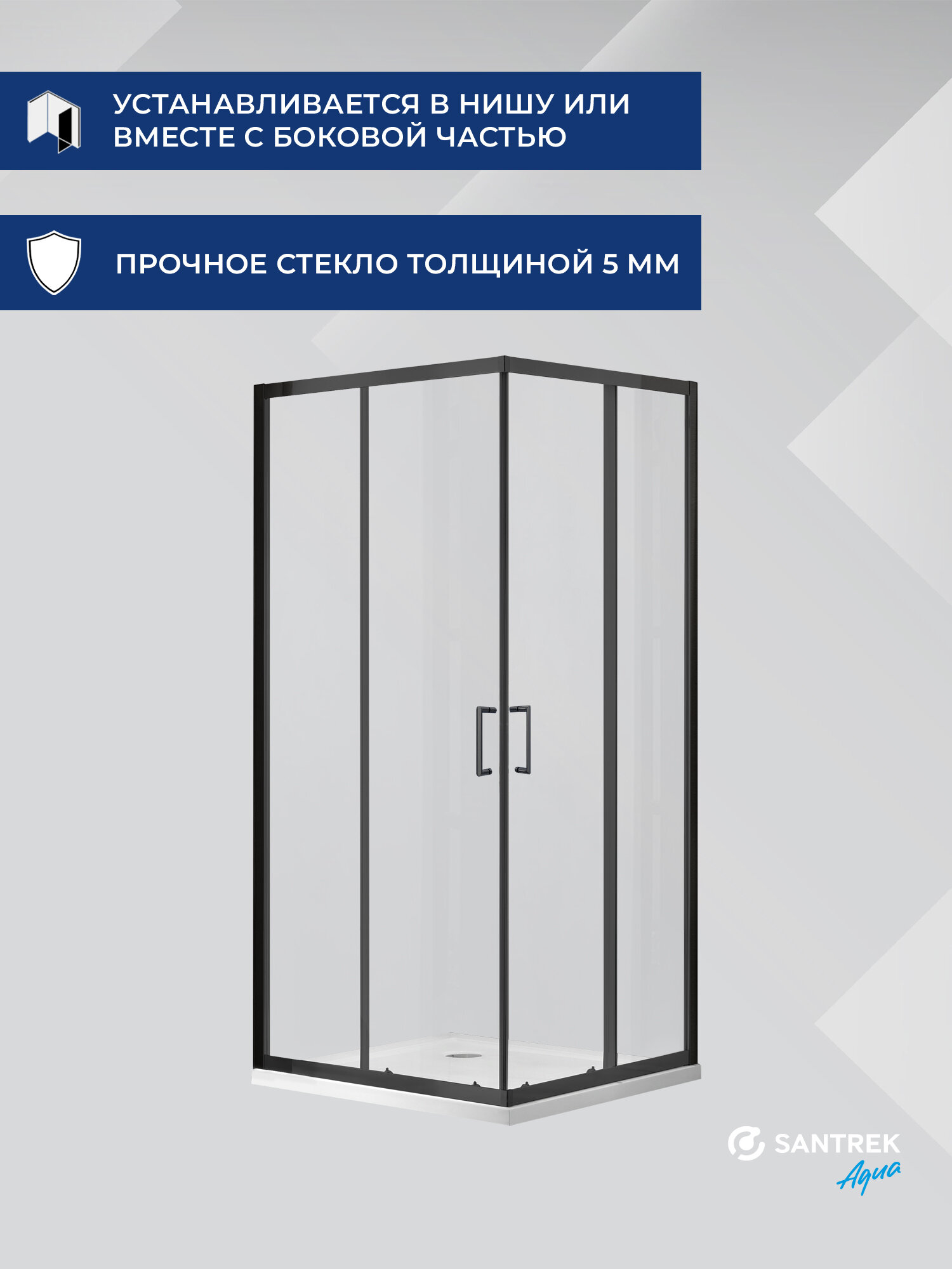 Душевое ограждение уголок SANTREK Lea-CR-800-C-Matt Black 800*800*1850 Г-обр. стекло Прозр 5мм, профиль Чёрный интересное: