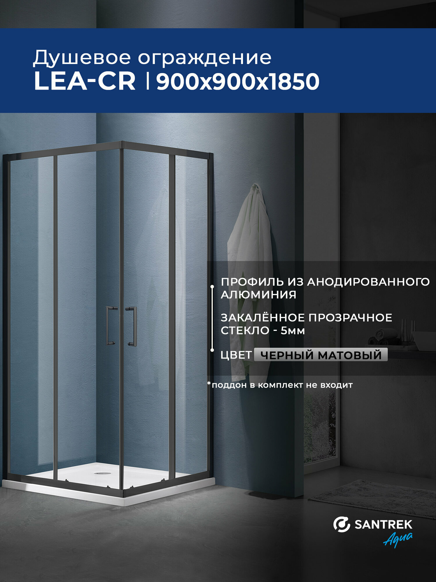 Душевое ограждение уголок SANTREK Lea-CR-900-C-Matt Black 900*900*1850 Г-обр. стекло Прозр 5мм, профиль Чёрный интересное:
