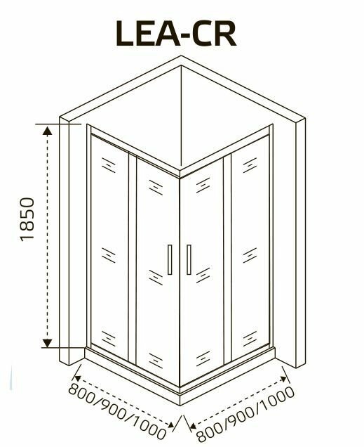 Душевое ограждение уголок SANTREK Lea-CR-800-C-Matt Black 800*800*1850 Г-обр. стекло Прозр 5мм, профиль Чёрный