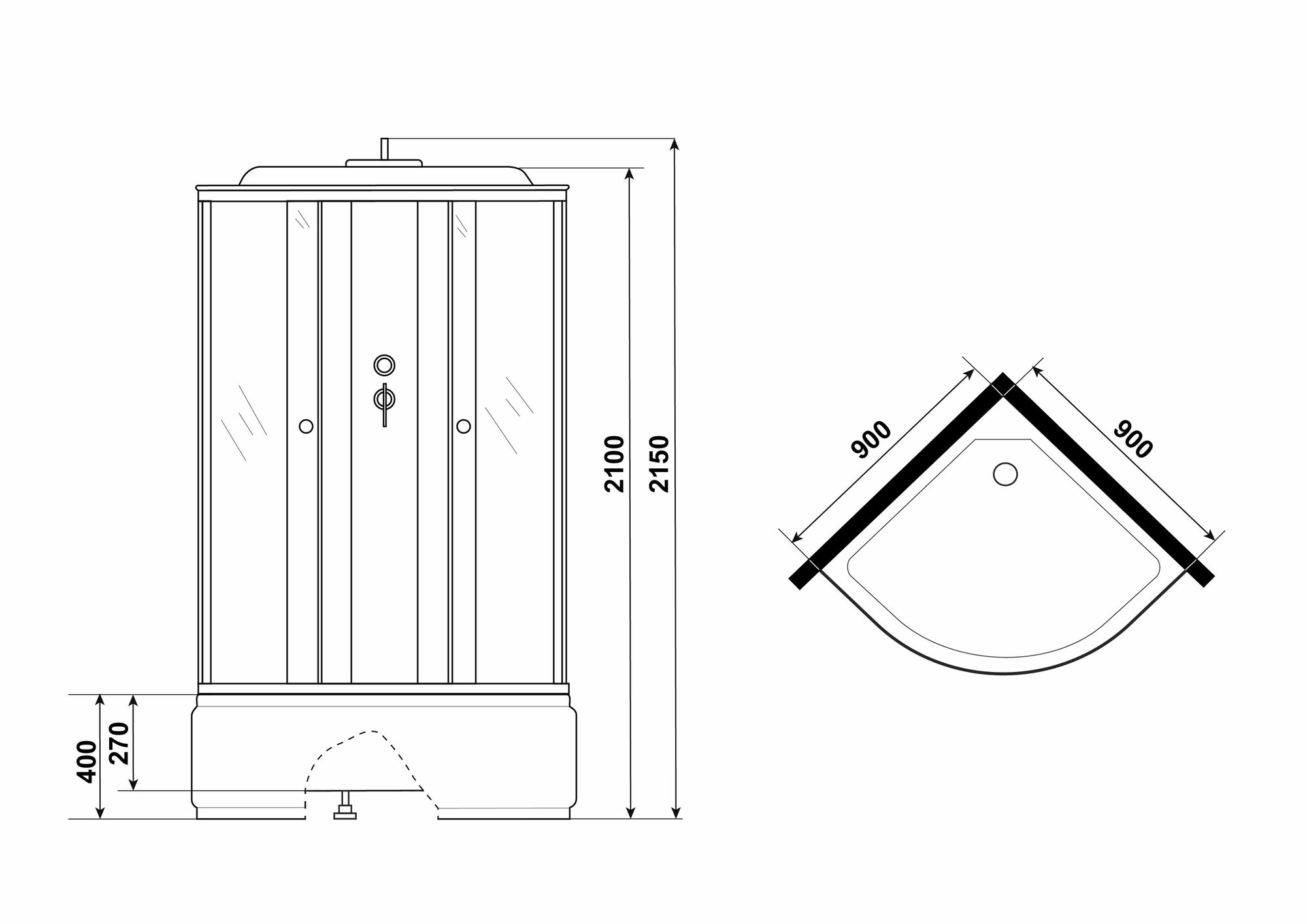 Душ. каб. Niagara Promo P90/80/40L/MT/BK (900х800х1950) 4 места