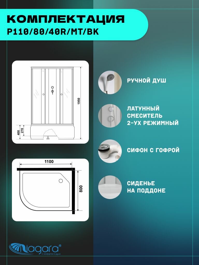 СохранитьДушевая кабина Niagara Promo P110/80/40R/MT/BK (110х80х195) 4 места интересное: