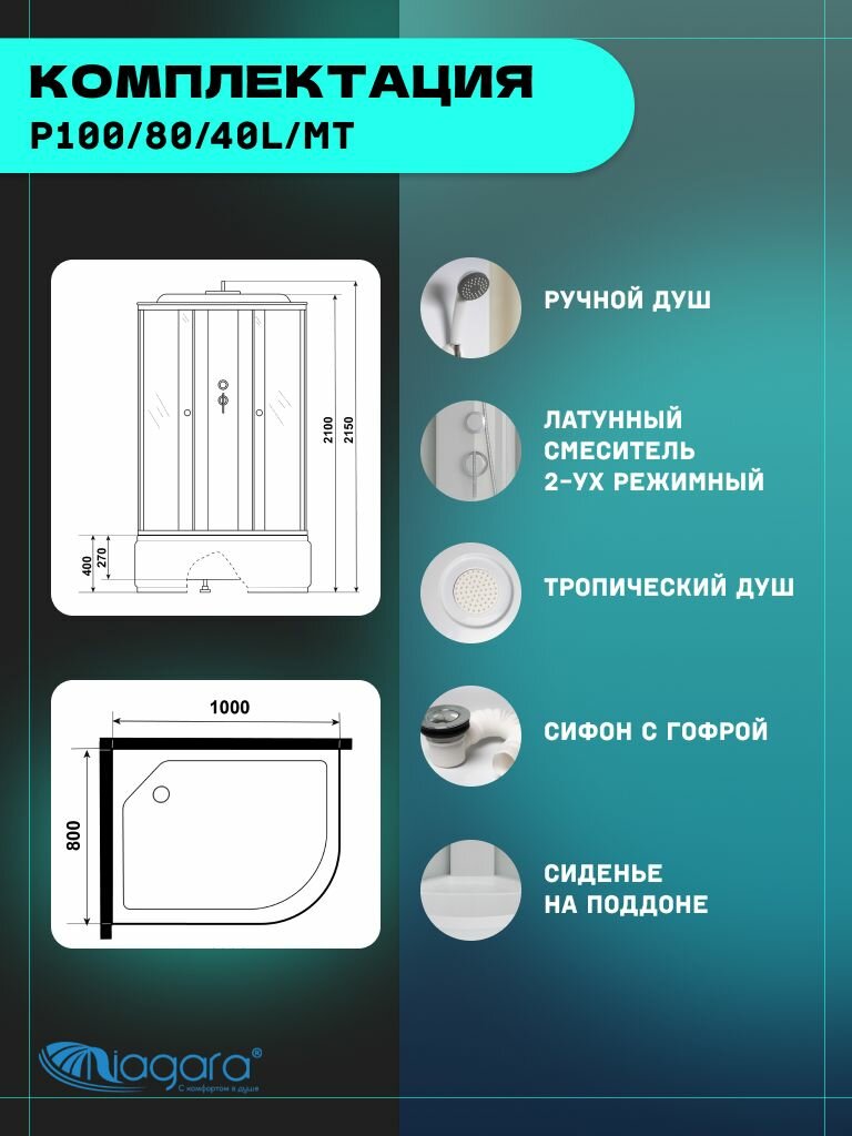 СохранитьДушевая кабина Niagara Promo P100/80/40L/MT (100х80х215) 4 места интересное: