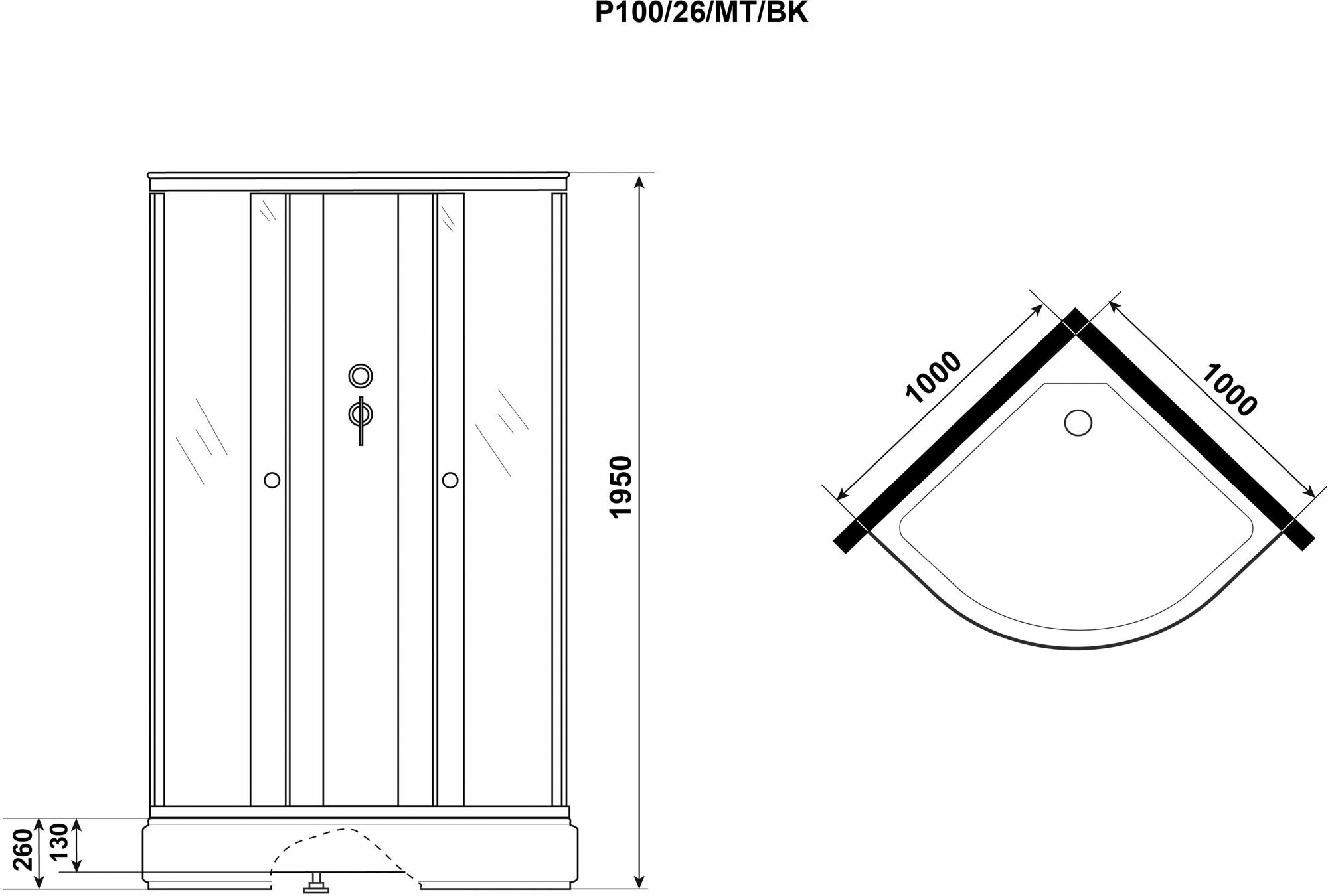Душевая кабина niagara promo p100/26/mt/bk (1000х1000х2000)