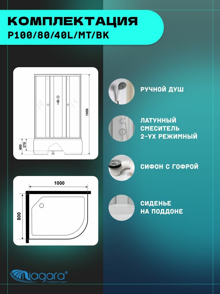СохранитьДушевая кабина Niagara Promo P100/80/40L/MT/BK (100х80х195) 4 места интересное: