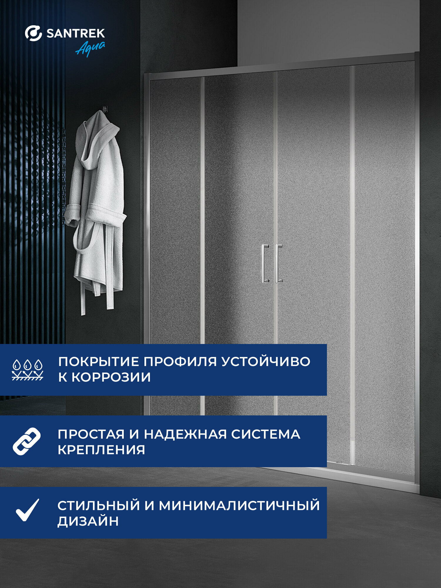 Душевое ограждение дверь в нишу SANTREK AQUA Lea- DF-1500-G-Chrome 1500*1850 Прямое стекло Грейп 5мм, профиль Хром
